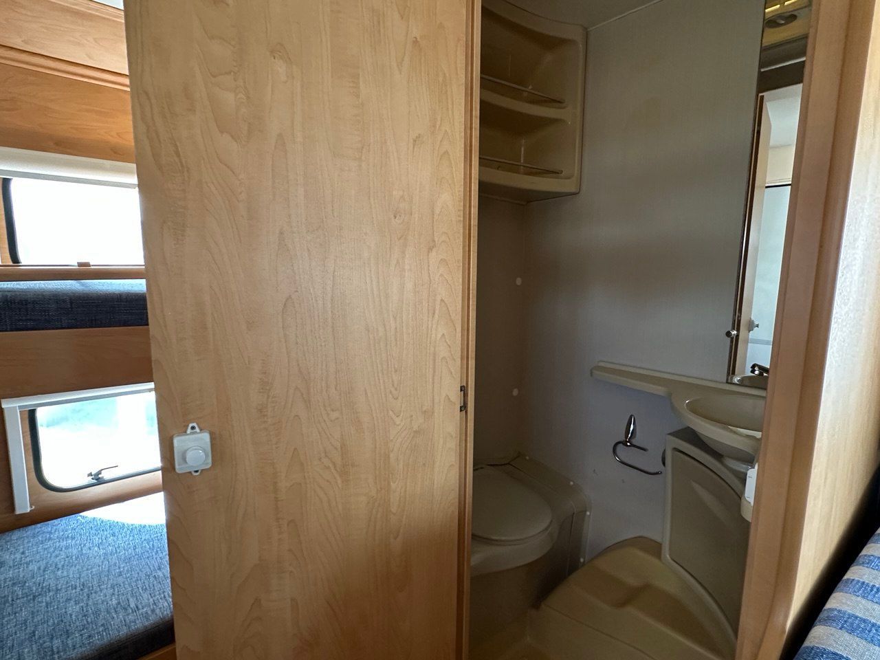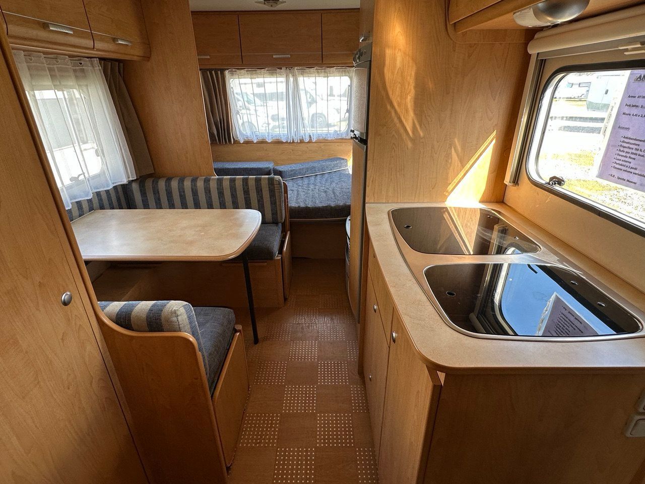Questa caravan è completa di Movimentatore automatico+ stabilizzatore Winterhoff WS 3000 + tendalino integrato manuale + Forno a microonde + 3 letti a castello + serbatoio acqua da 50 l. + boiler truma Therme + Baggno con Box doccia sewparato + stufa 3000 cal. con termoventilazione