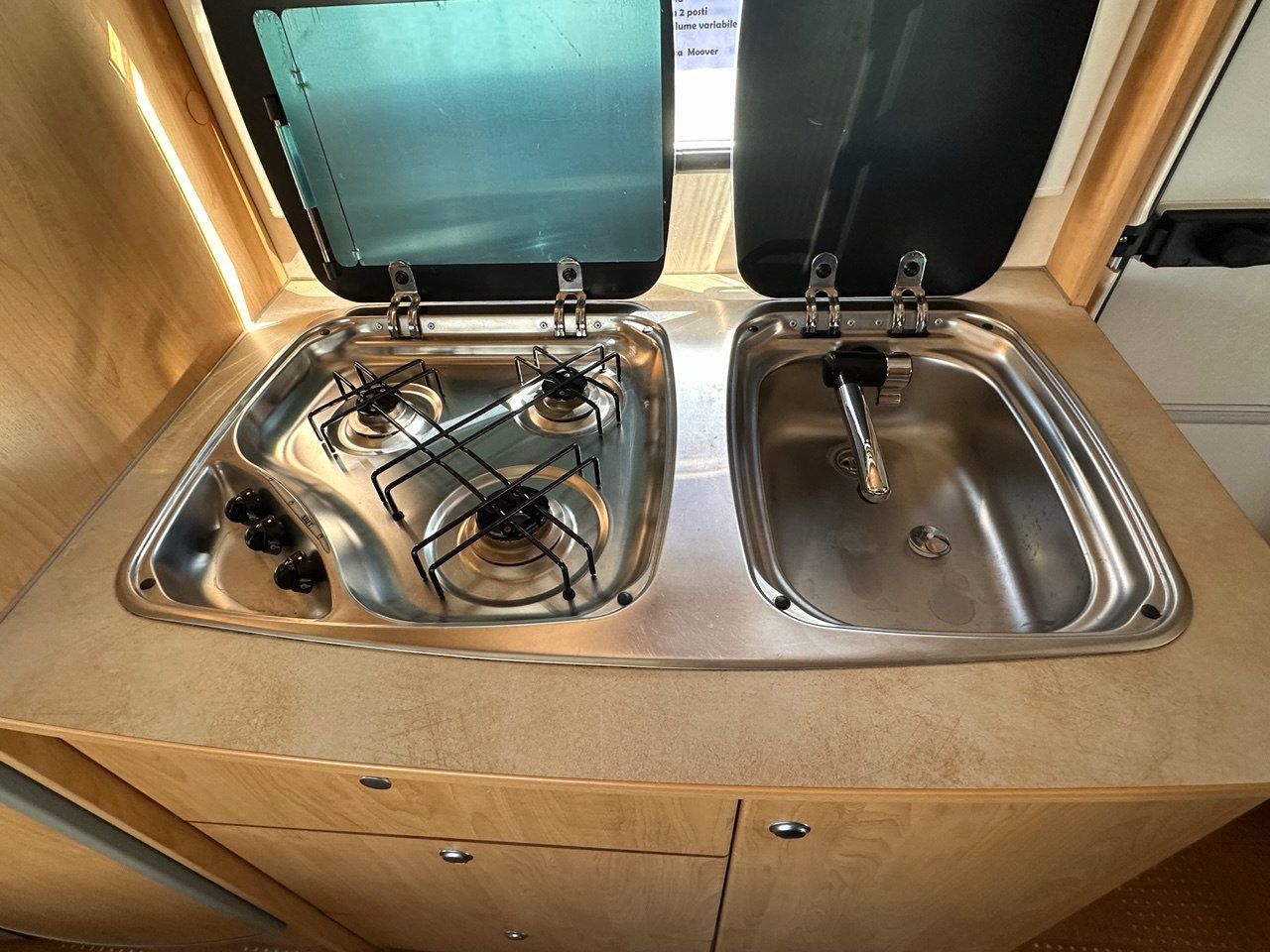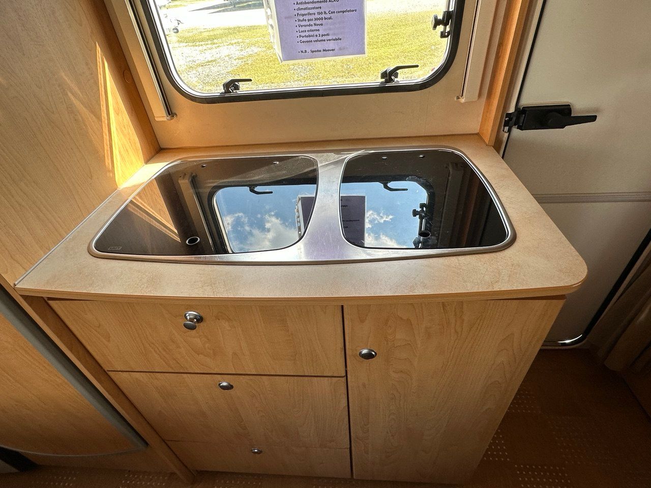 la caravan è .completa di movimentatore automatico con camperizzazione e staccabatteria elettronico, piedini elettrici autolivellanti, tendalino elettrico, luce esterna barra a led, luce porta, attacco gas esterno, attacco esterno tv, climatizzatore, stufa combi 4 con con termoventilazione eboiler integrato(volume 10l.), 2 oblò panoramici, 2 sportelli posti sotto letti gemelli per carico materiale anche dall'esterno, Zanzariera sulla porta .