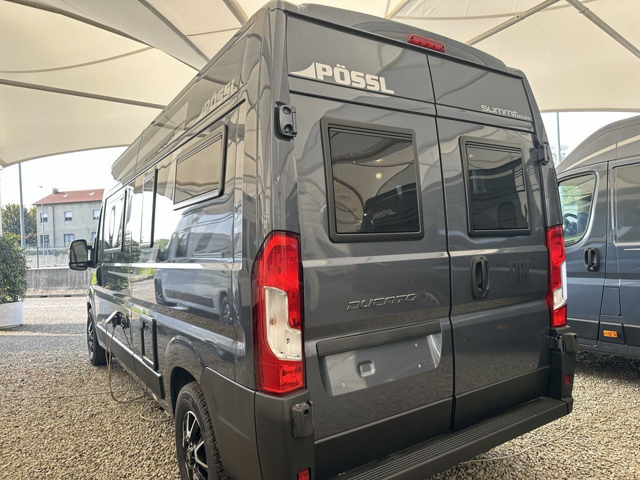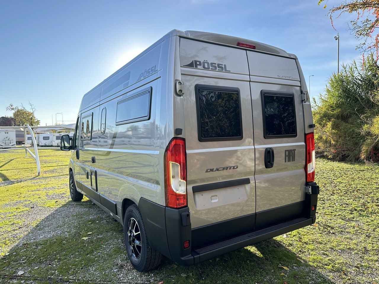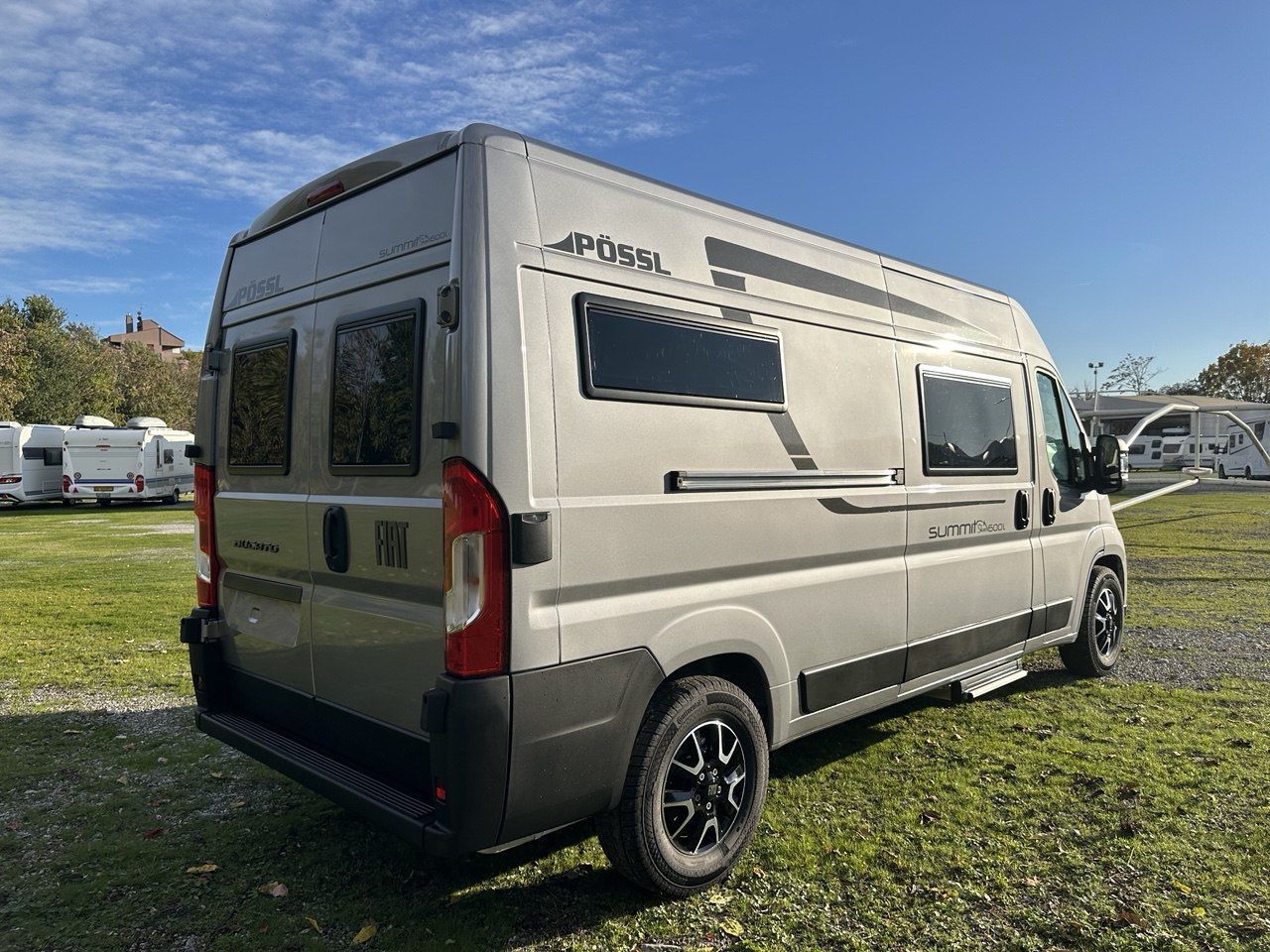 POSSL SUMMIT 600 PLUS su FIAT cv.140: Van 4 posti viaggio, con letto matrimoniale posteriore, ampia dinette con prolunga tavolo e terzo letto, frigorifero apribile da ambo i lati, Bagno con finestra con doccia traslabile, riscaldamento Truma Diesel, comando Truma Inet X, pacchetto Inverno, attacco Isofix, set di prese aggiuntive.