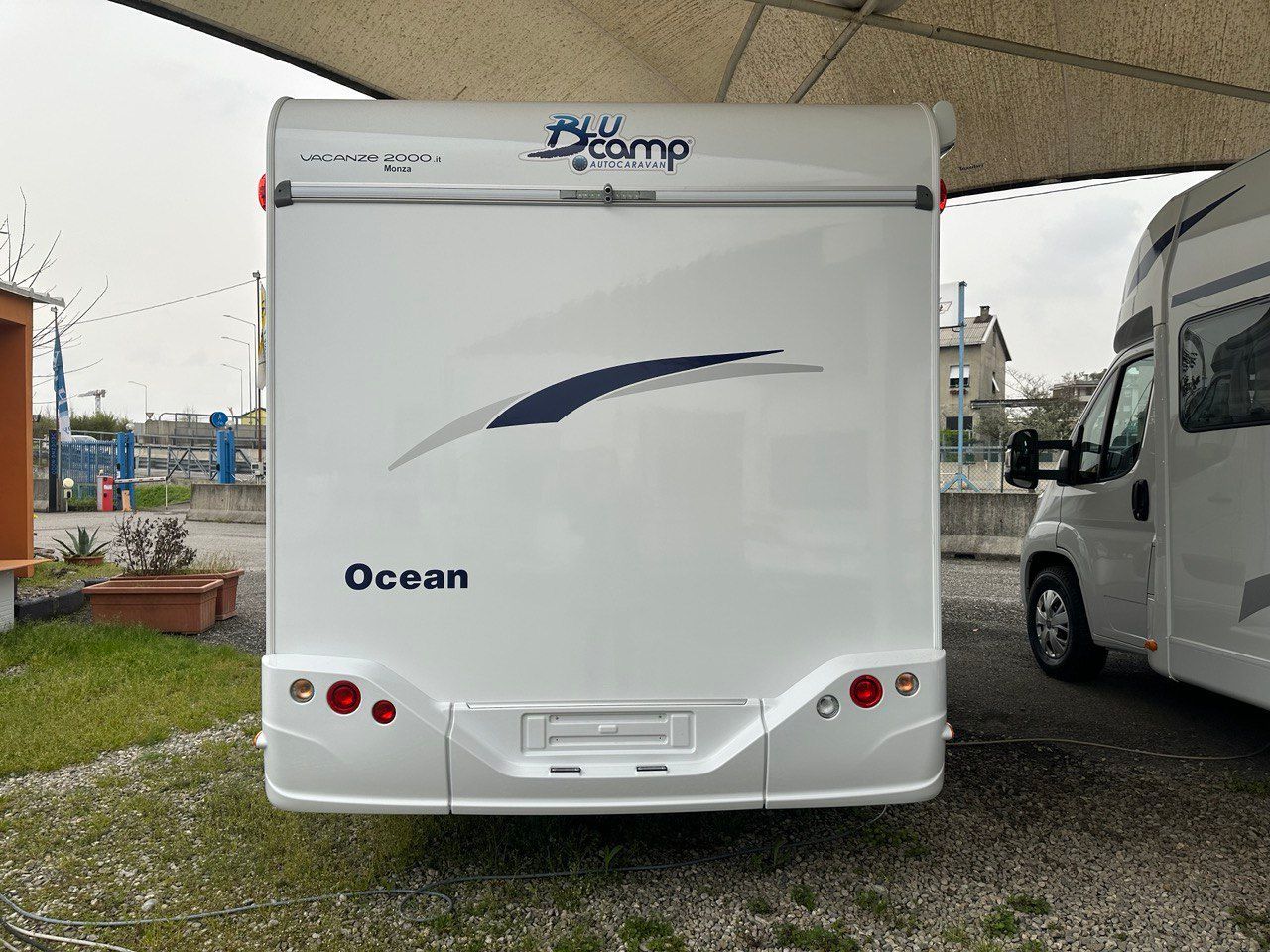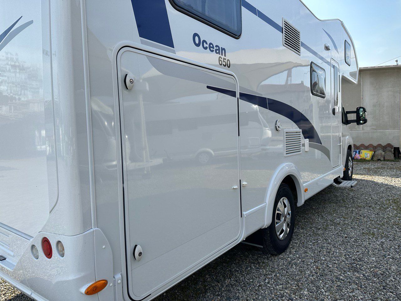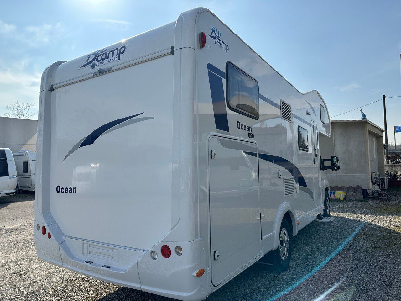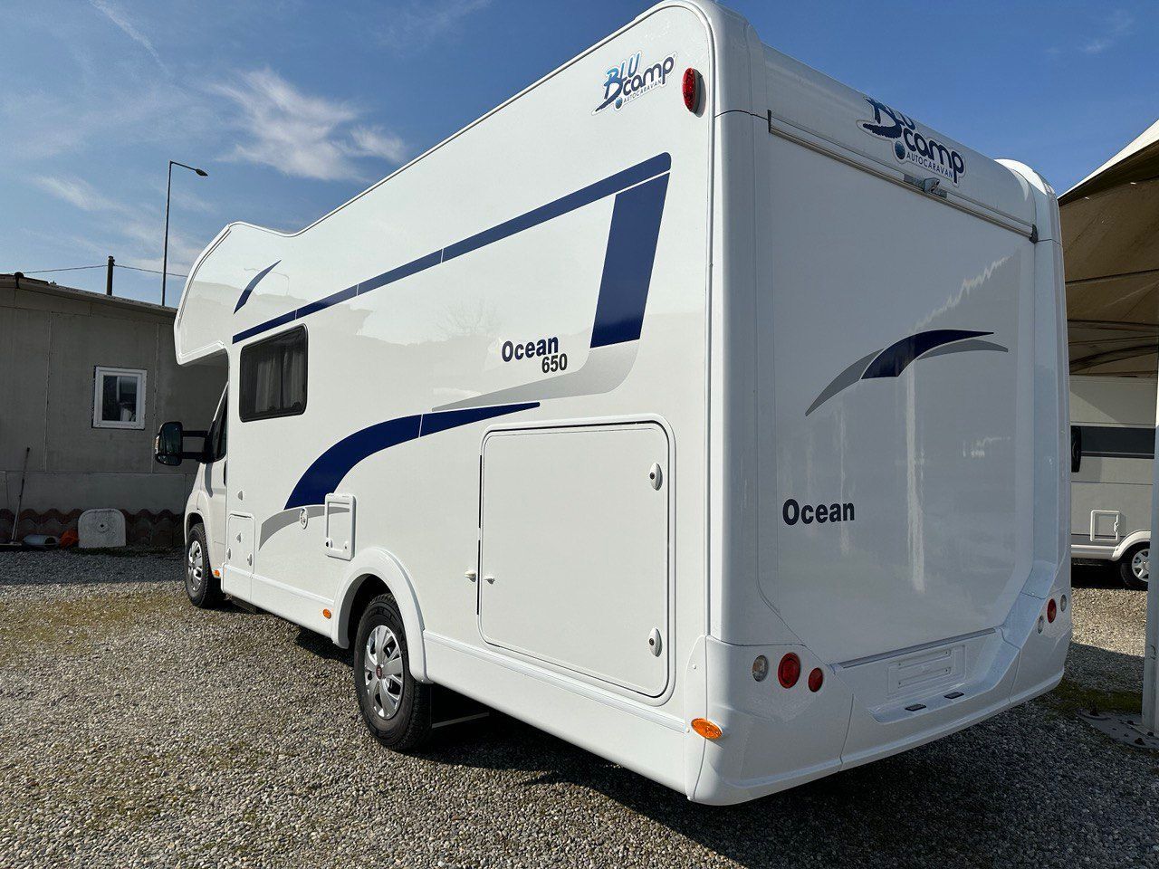 Blu Camp OCEAN 650 su Fiat cc.2.2 cv. 140 mt. 7,25 x 2,32 x 2,94 Questo Mansardato XL è perfetto per le famiglie numerose , posti letto 6, posti omologati 5. Completo di Radio touch screen con retrocamera a doppio occhio + antifurto perimetrale e volumetrico + cerchi in acciaio 16" + aria condizionata in cabina + specchi elettrici + air bag passseggero + careggiata allargata + ABS + ESP + ASR+ Paraurti bianco + sedili regolabili con braccioli + fodere sedili + Zanzariera sulla porta + predisposizione tv + presa USB + choiusura centralizzata + Frigorifero da 152 l. AES + Bagno con Box Doccia XL +