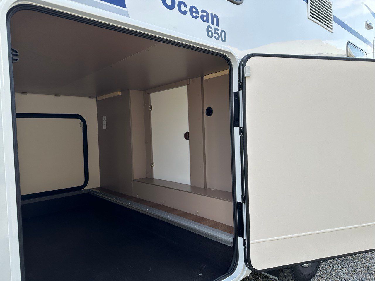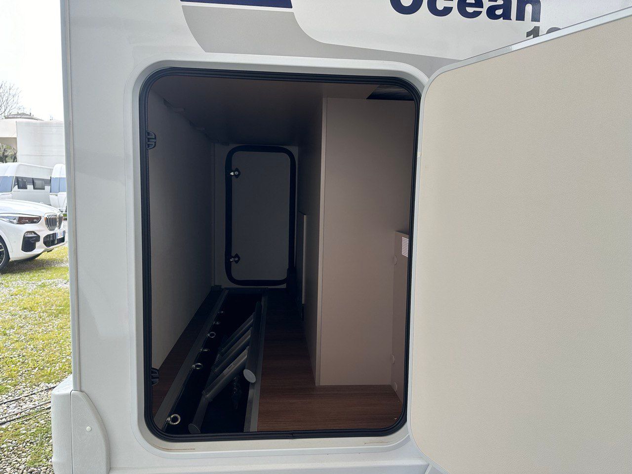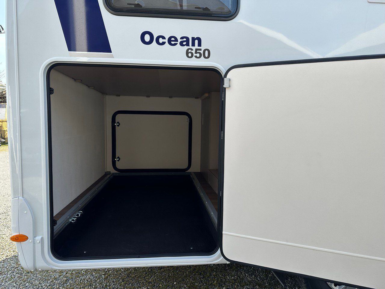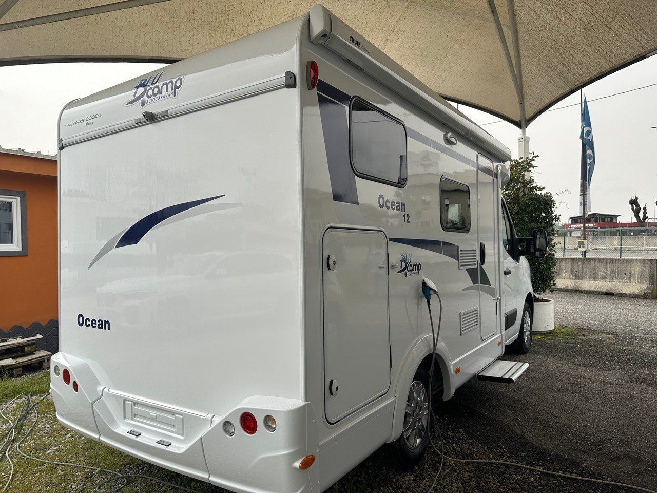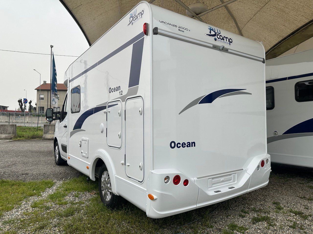 Blu Camp OCEAN 650 su Fiat cc.2.2 cv. 140 mt. 7,25 x 2,32 x 2,94 Questo Mansardato XL è perfetto per le famiglie numerose , posti letto 6, posti omologati 5. Completo di Radio touch screen con retrocamera a doppio occhio + antifurto perimetrale e volumetrico + cerchi in acciaio 16" + aria condizionata in cabina + specchi elettrici + air bag passseggero + careggiata allargata + ABS + ESP + ASR+ Paraurti bianco + sedili regolabili con braccioli + fodere sedili + Zanzariera sulla porta + predisposizione tv + presa USB + choiusura centralizzata + Frigorifero da 152 l. AES + Bagno con Box Doccia XL +