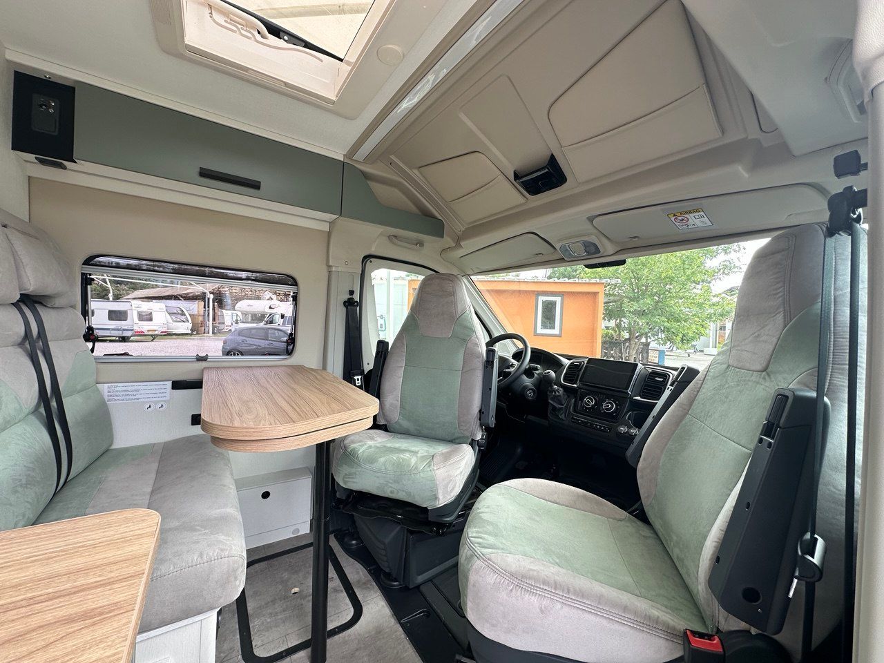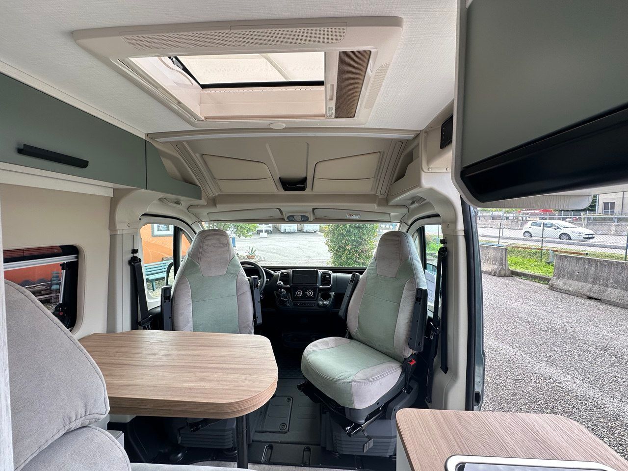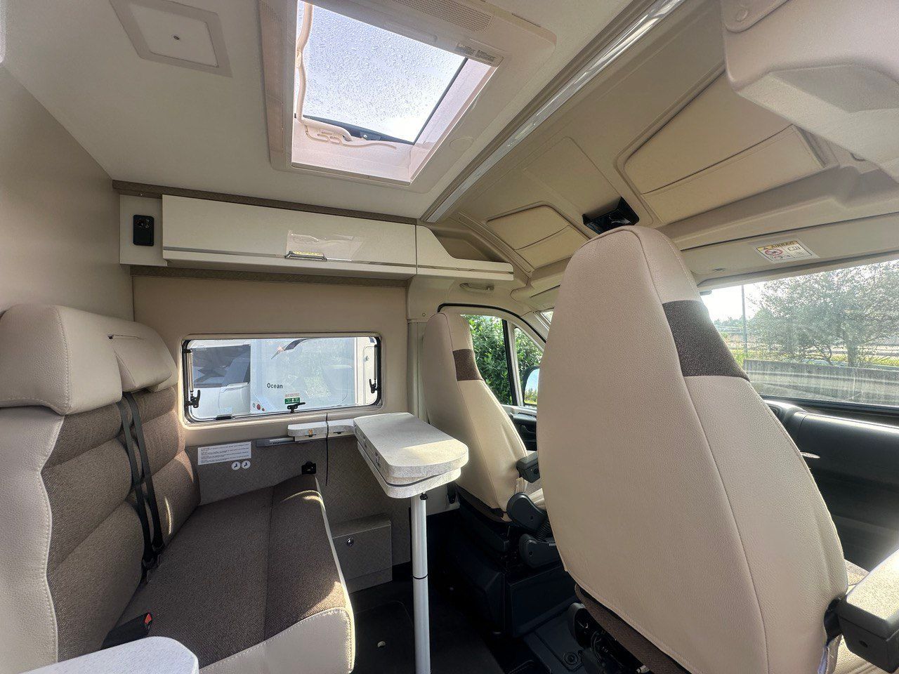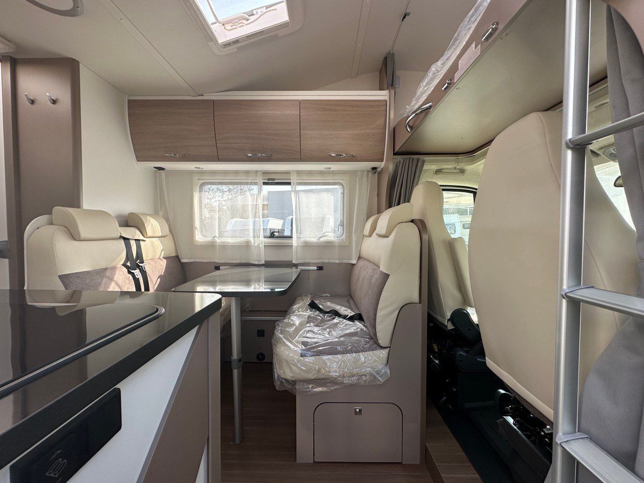 Accessori: Pack All Inn, frigorifero apribile da ambo i lati, Bagno Vario con finestra e doccia traslabile, inserto piatto doccia, portaoggettigirevole per vasca, riscaldamento Truma Diesel, comando Truma Inet X, pacchetto Inverno,Panca doppia, attacco Isofix, set di prese aggiuntive 230V/USB predisposizione pannello solare, finestre porte posteriri con tendine avvolgibili,deposito multitetto, ausilio chiusura Softlock.
