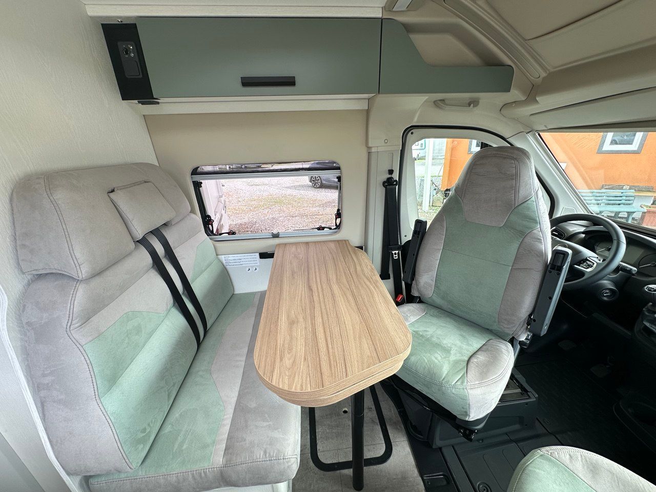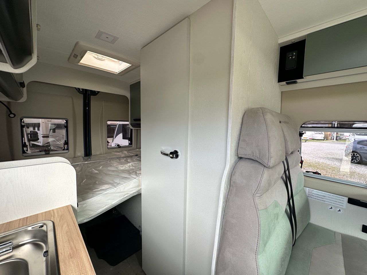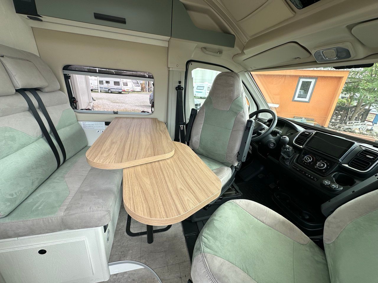 Accessori: Pack All Inn, frigorifero apribile da ambo i lati, Bagno Vario con finestra e doccia traslabile, inserto piatto doccia, portaoggettigirevole per vasca, riscaldamento Truma Diesel, comando Truma Inet X, pacchetto Inverno,Panca doppia, attacco Isofix, set di prese aggiuntive 230V/USB predisposizione pannello solare, finestre porte posteriri con tendine avvolgibili,deposito multitetto, ausilio chiusura Softlock.