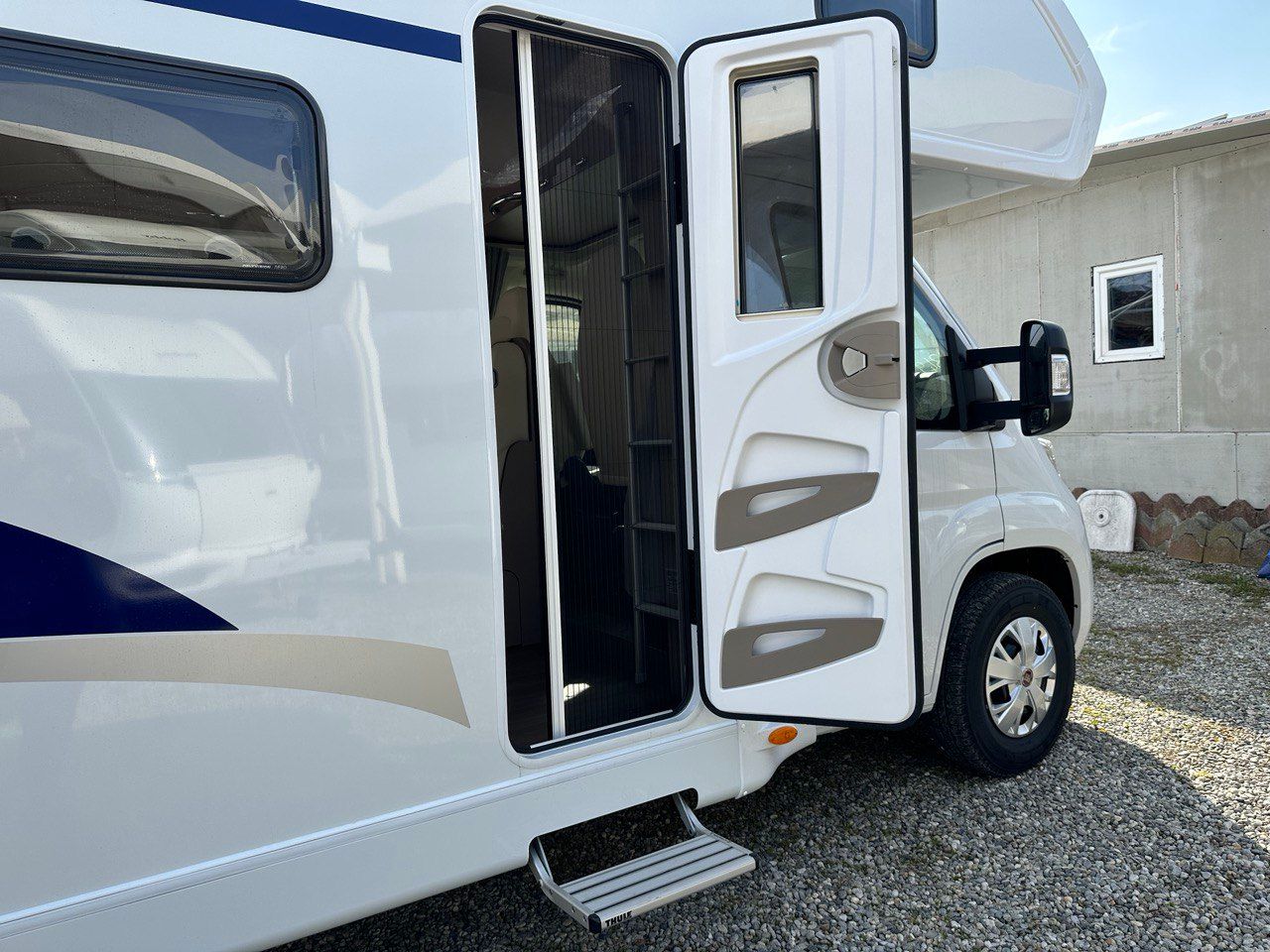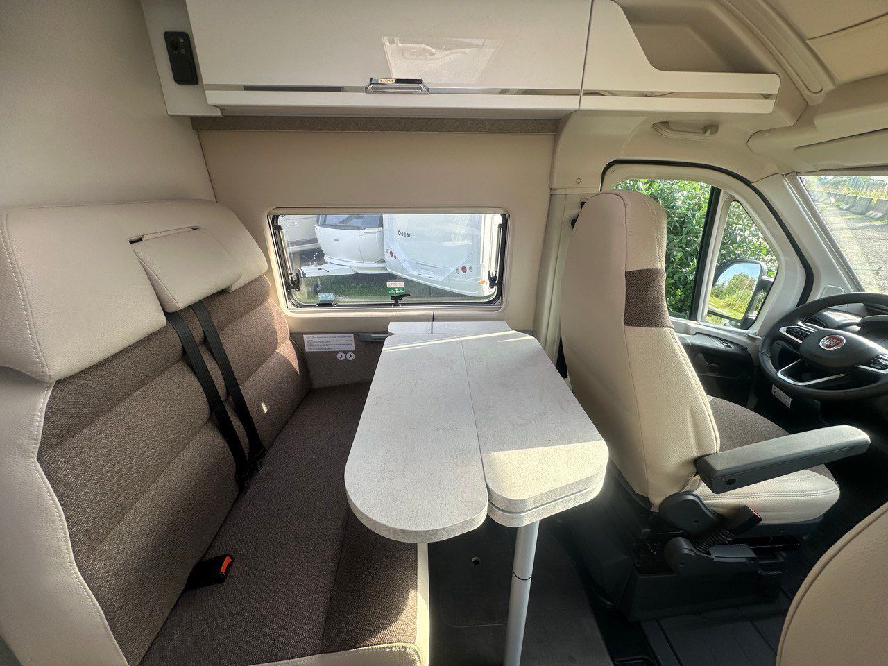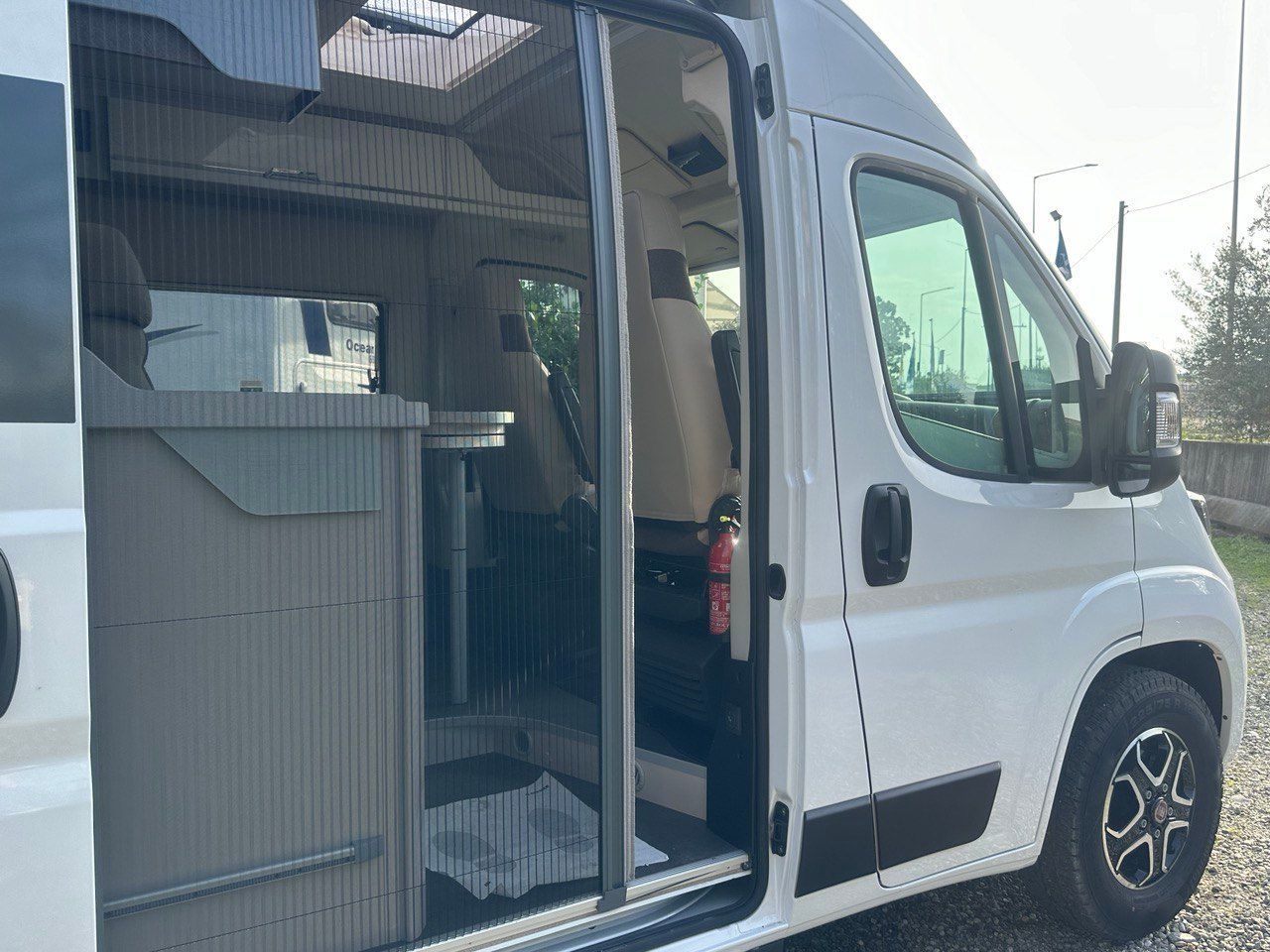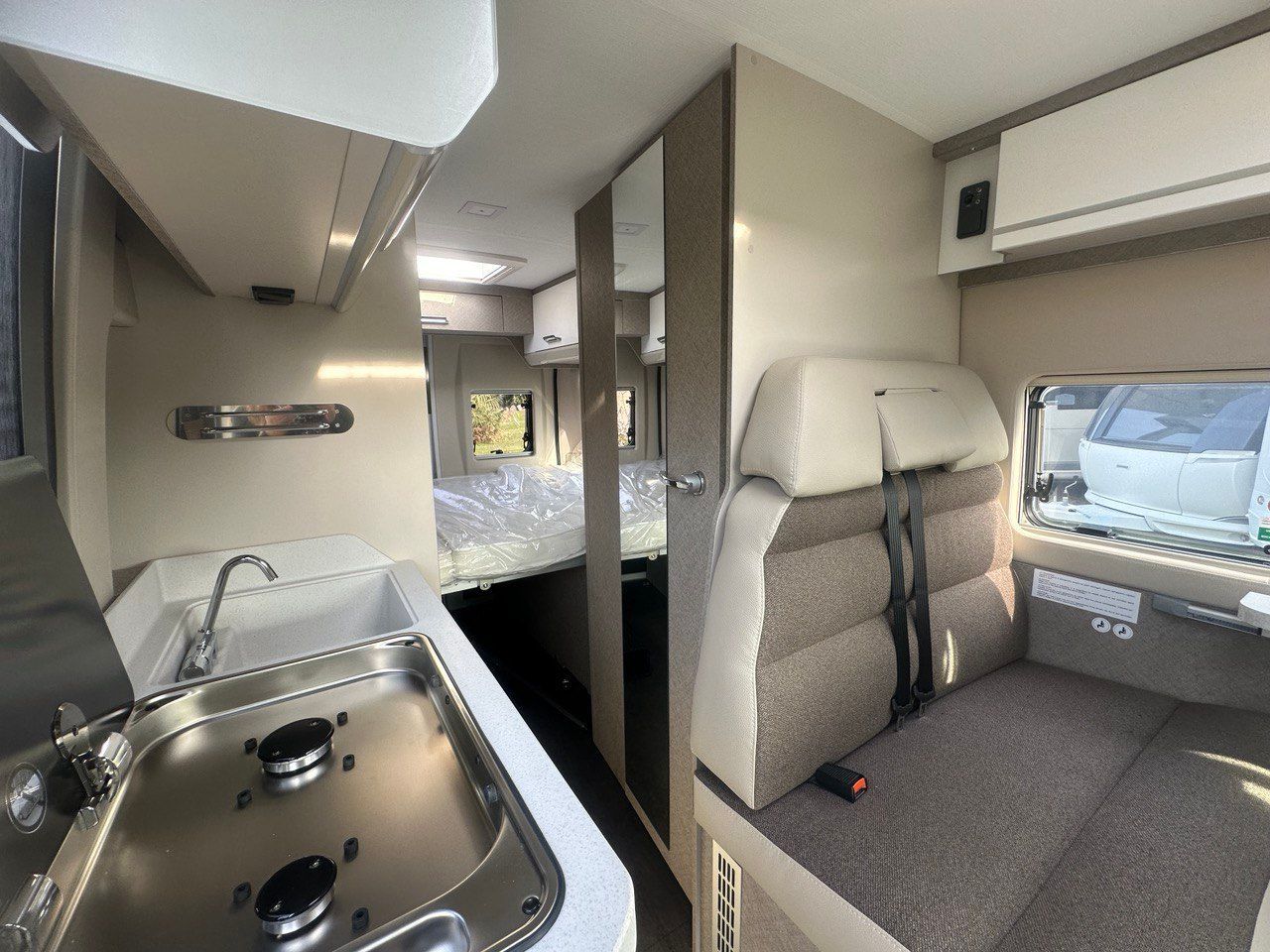 Accessori: Pack All Inn, frigorifero apribile da ambo i lati, Bagno Vario con finestra e doccia traslabile, inserto piatto doccia, portaoggettigirevole per vasca, riscaldamento Truma Diesel, comando Truma Inet X, pacchetto Inverno,Panca doppia, attacco Isofix, set di prese aggiuntive 230V/USB predisposizione pannello solare, finestre porte posteriri con tendine avvolgibili,deposito multitetto, ausilio chiusura Softlock.