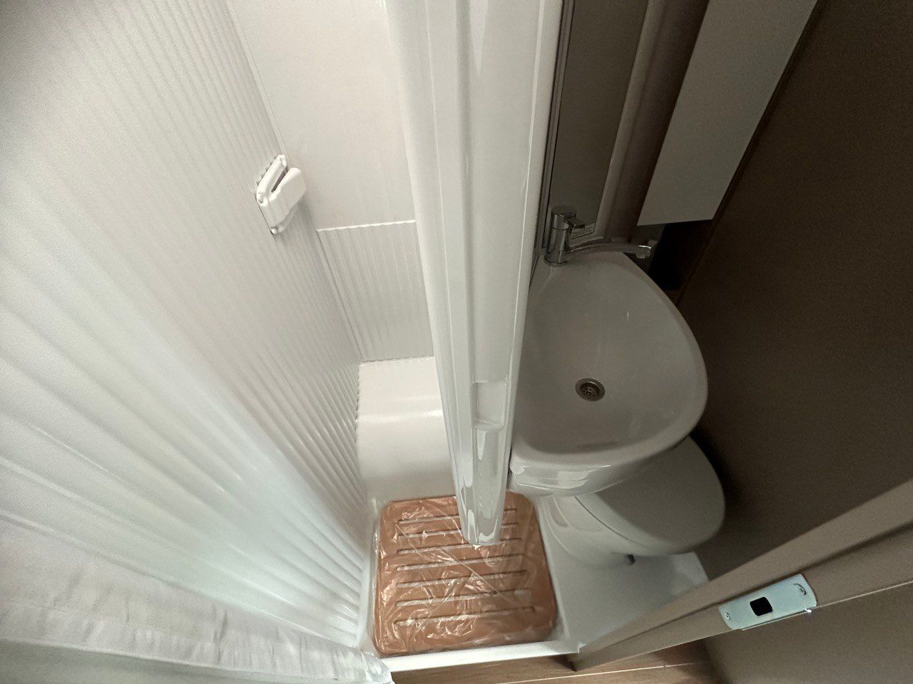 Disposizione interna : letti gemelli trsformabili in letto matrimoniale + dinette con prolunga tavolo e 3° letto in Dinette + Bagno centrale Rotondo ( perfetto per chi ama il bagno comodo con una doccia grande )