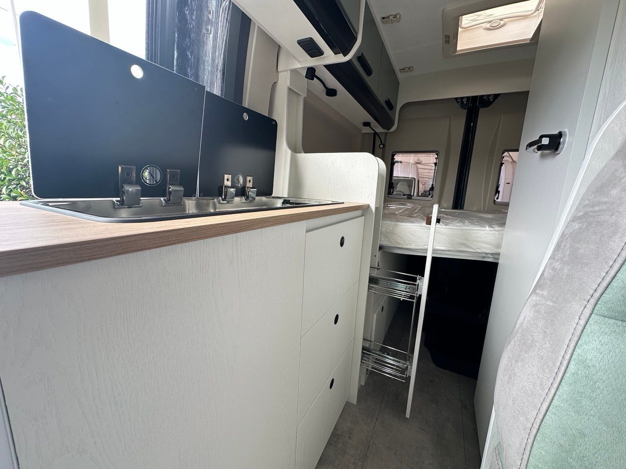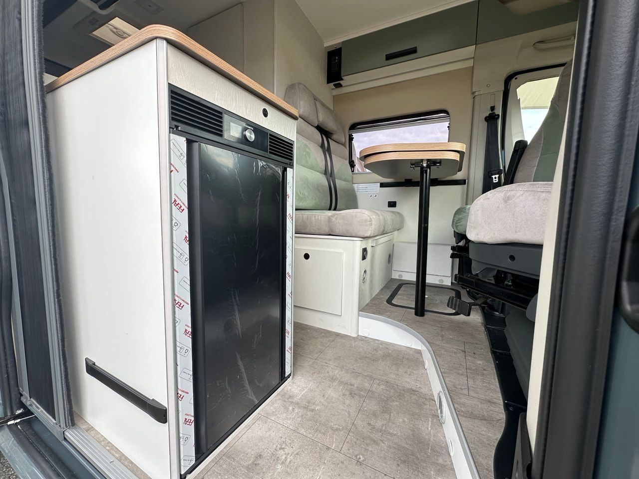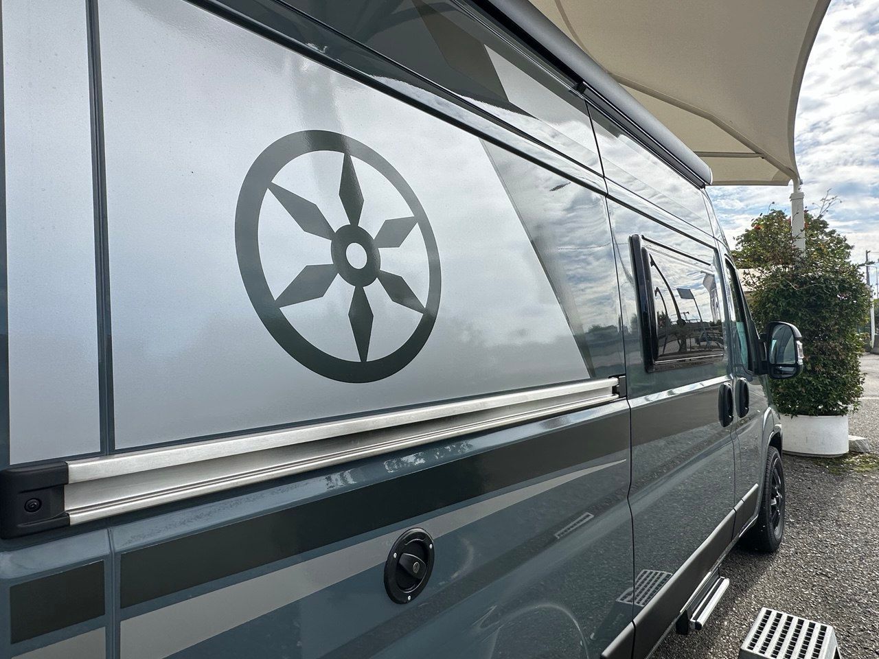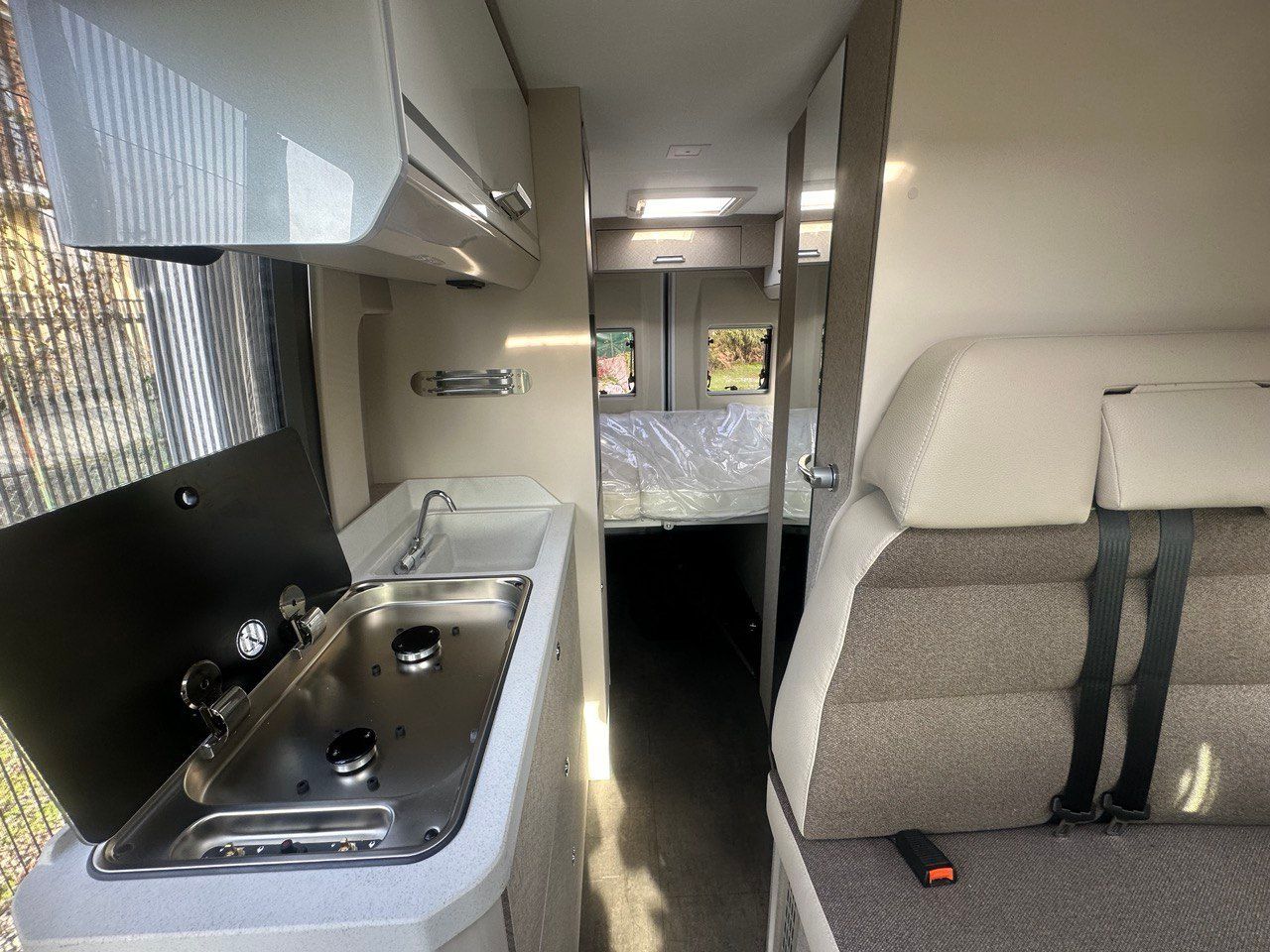 Van 4 posti viaggio, con letto matrimoniale posteriore, ampia dinette con prolunga tavolo e terzo letto, frigorifero apribile da ambo i lati, Bagno con finestra e doccia traslabile,tavolo alternativo con kit 3° letto, attacco isofix,riscaldamento Truma Diesel, comando Truma Inet X, pacchetto Inverno, set di prese aggiuntive230V/USB, Finestra posterire SX, pacchetto sanitario.