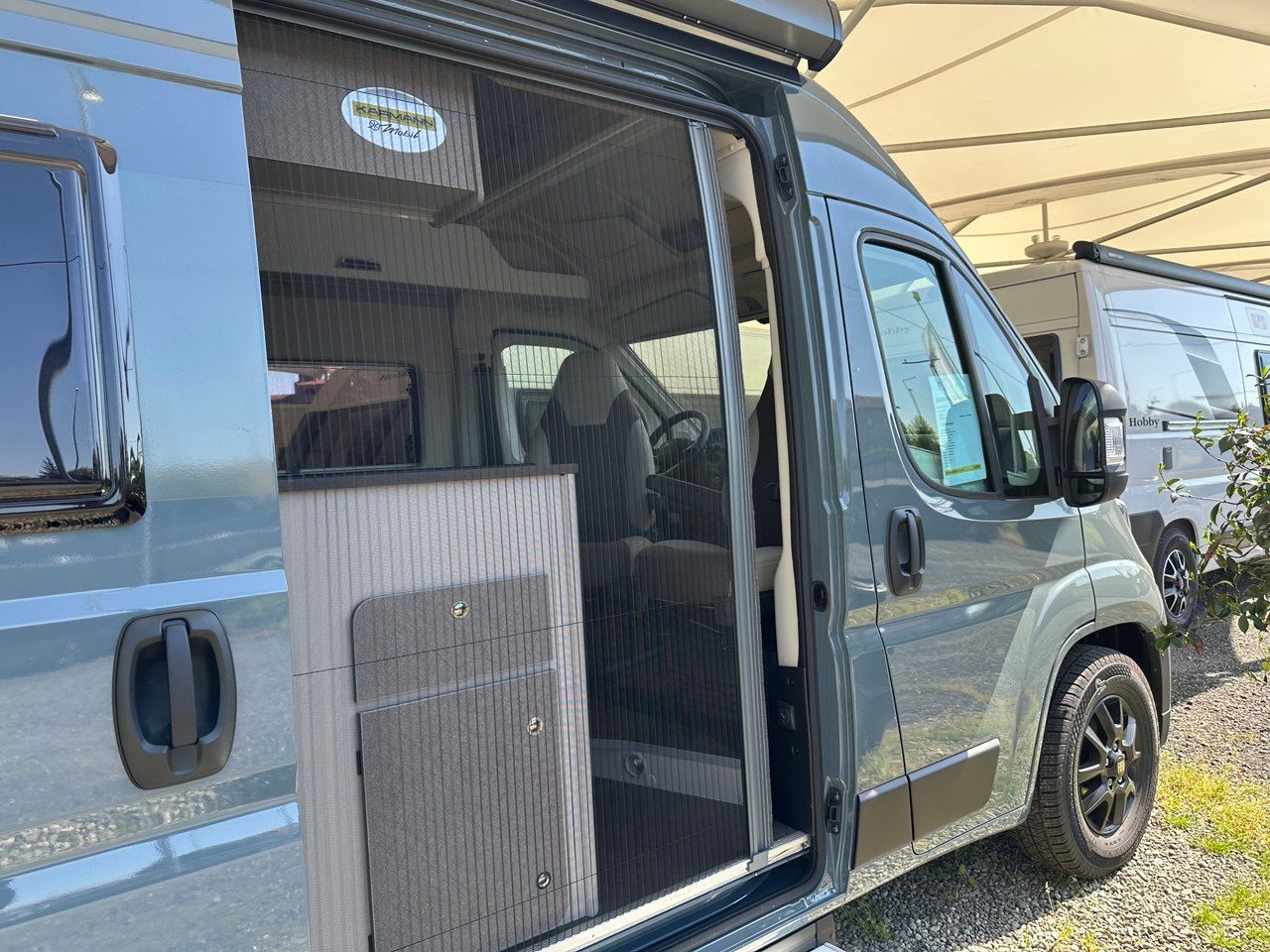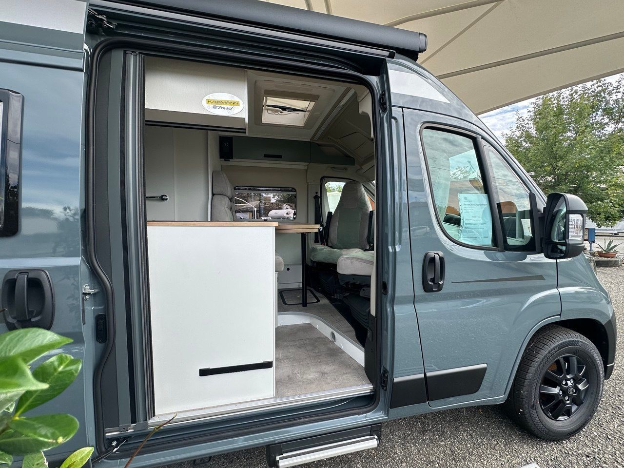 Karmann DAVIS 595 TRENDSTYLE su Fiat 2.2 cv. 140 è il camper ideale per le famiglie con figli, in soli mt. 5,99 abbiamo realizzato 4 posti omologati e 4 posti letto con 2 letti a castello posteriori + tetto a soffietto + ampia dinette centrale + bagno volume variabile con box docccia separato.Il van è completo di Cerchi in Lega da 16"+ riscaldamento Diesel + veranda + retrocamera posteriore + tendalino + zanzariera su portellone + scalino eletrico.