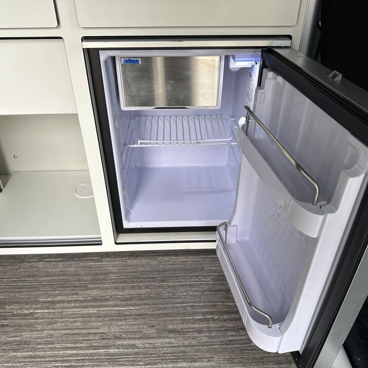 due fuochi + frigorifero a compressore 42l. , serbatoio acqua 50l. ,