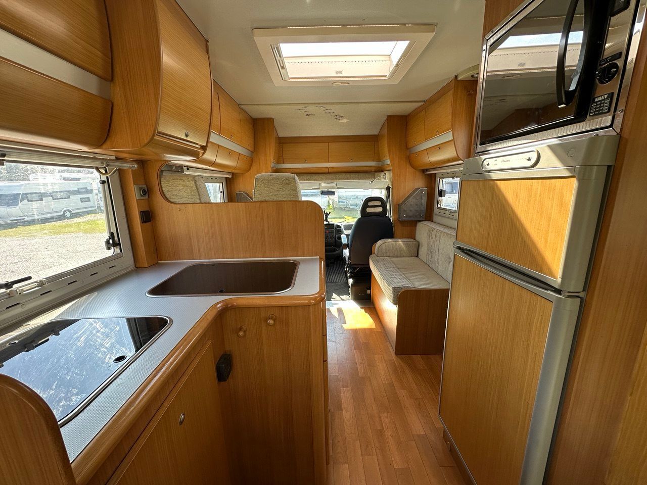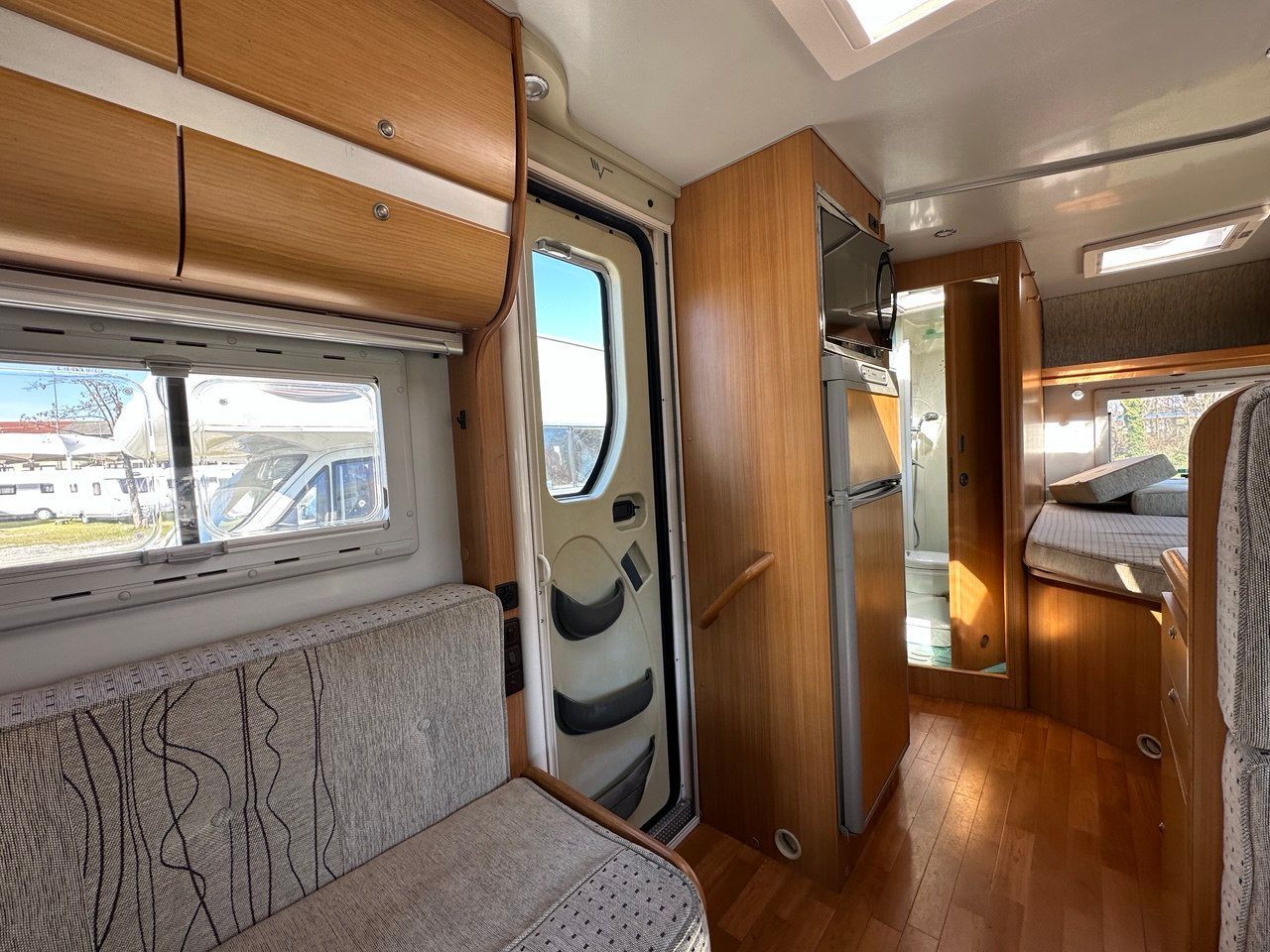 Accessori montati: Radio 2din con navigatore EU, retrocamera,BT,DAB, applecarplay / android e pannello 6,1 touch screen, pannello solare, serbatoio grige riscaldato, frigorifero trivalente 150l. automatico, Stufa Combi con canalizzazione dx/sx, scalino elettrico con risalita automatica, luce esterna porta, porta con zanzariera, cerchi da 16″ con pneumatici M+S, Clima in cabina. USATO GARANTITO!
