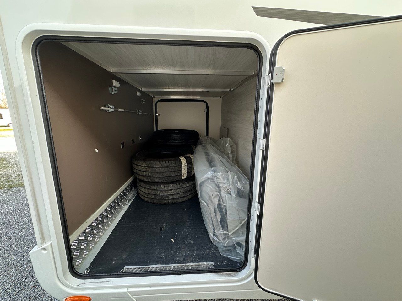 Cerchi in lega 16" + Radio con comandi al volante + retrocamera + condizionatore + pannello fotovoltaico con parallelatore + serbatoio acqua esterno + Tendalinpo + antenna tv + tv + Oblò panoramico + luce esterna + portzanzariera + duo control+ ruota scorta + telo protezione inverno per esterno cabina + treno gomme invernali .