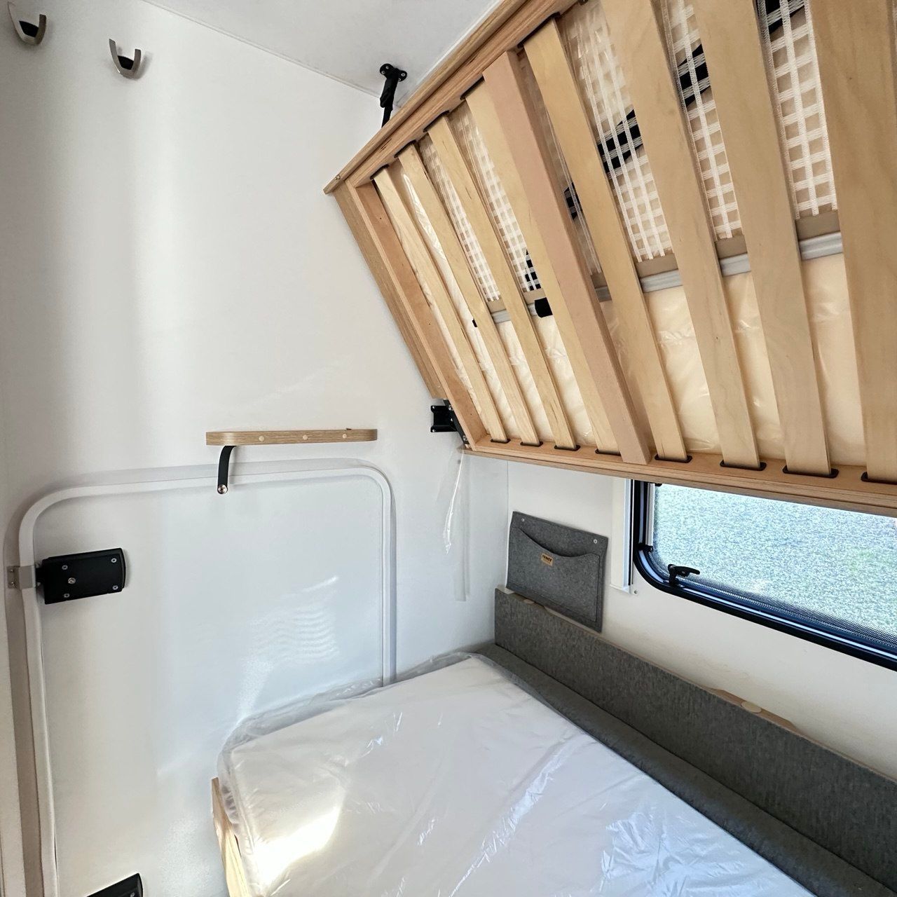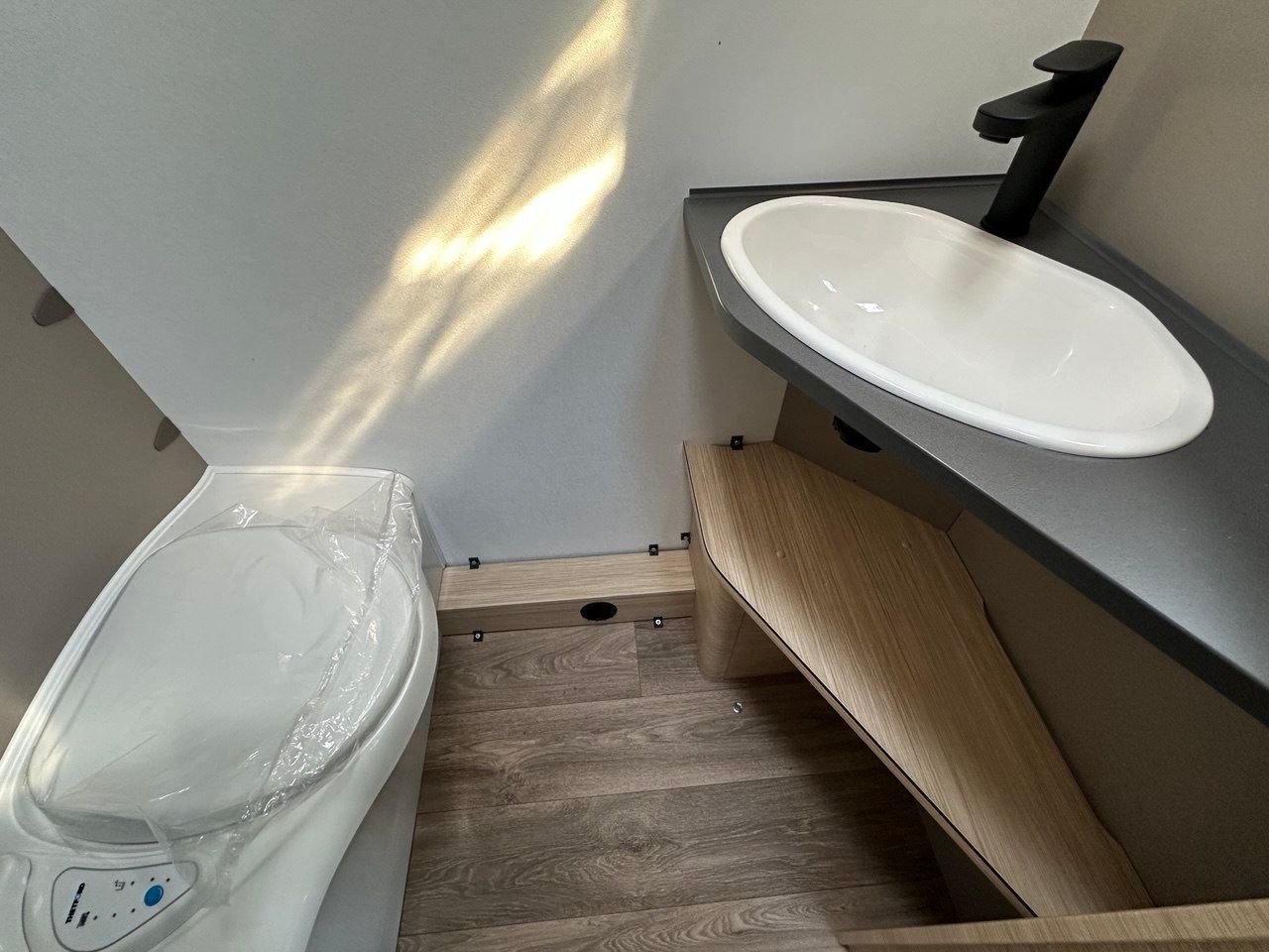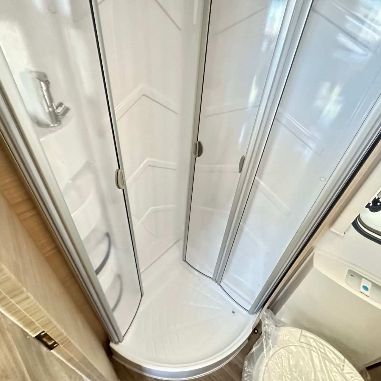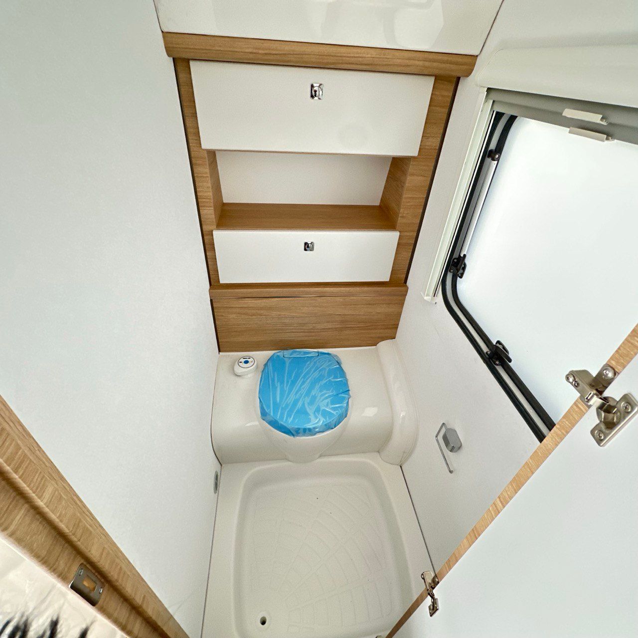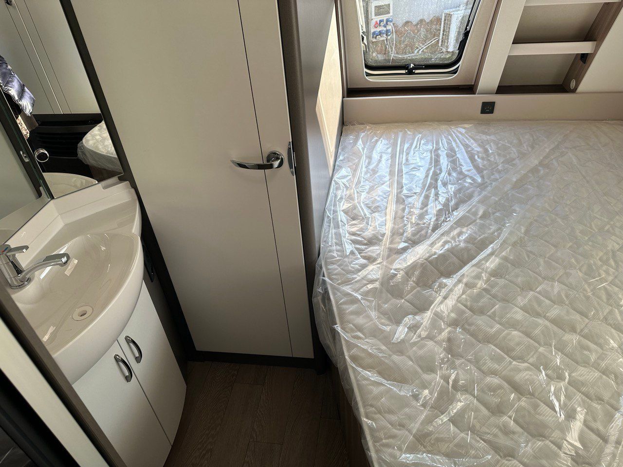 Letto Matrimoniale con doghe, ampio gavone sottostante, dinette a ferro di cavallo, camera da bagno con box doccia separato. Tutto il confort che cerchi in una caravan!
