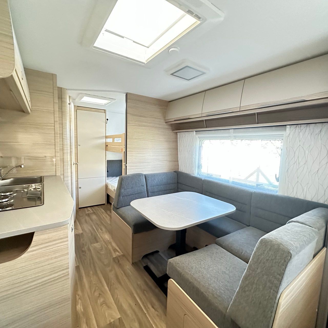 Caravan 4 posti:letto con dinette anteriore trasformabile in letto matrimoniale + letto a castello posteriore
