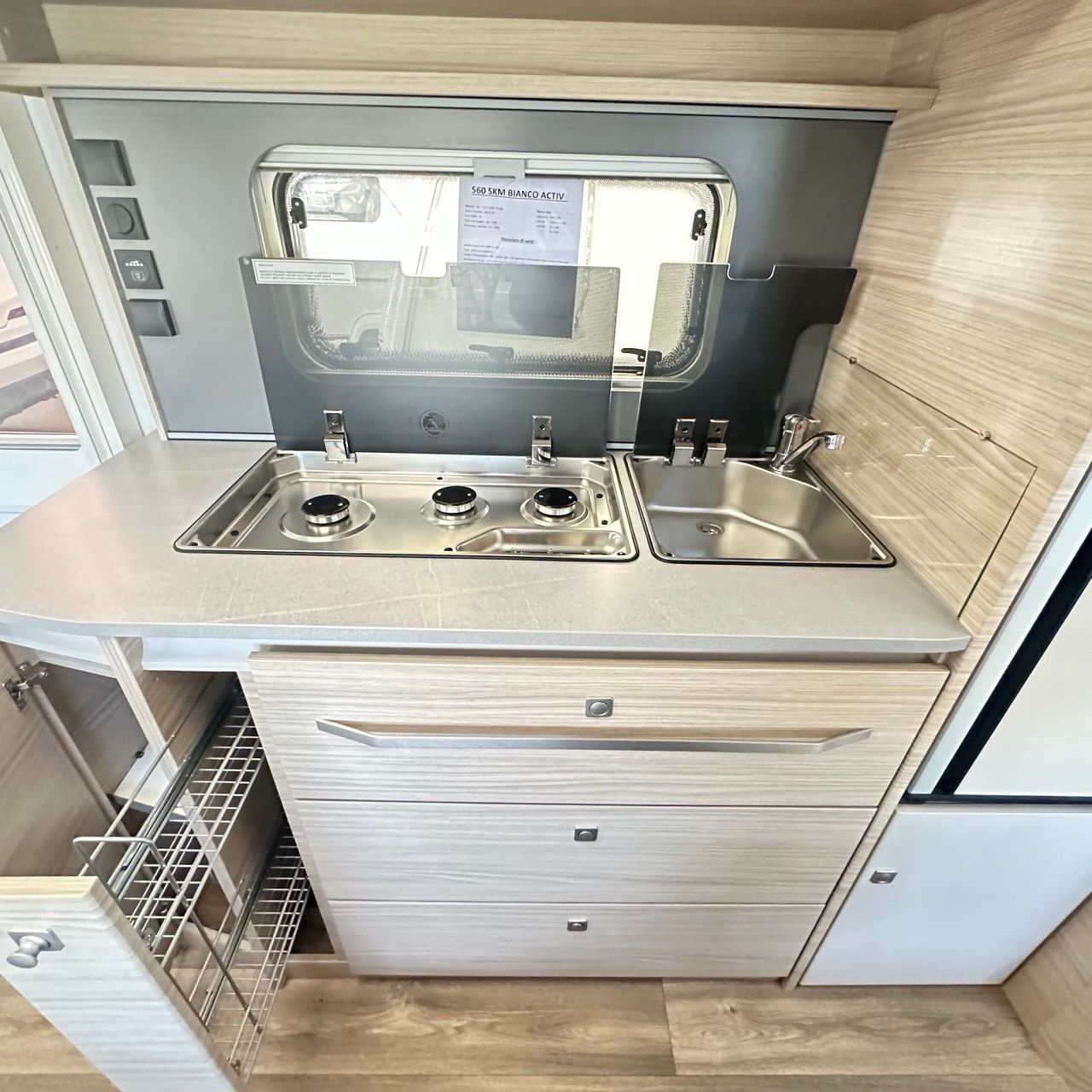 stufa Truma Combi 6,con Boiler10l. , Frigorifero Dometic Slim Tower 133l. con congelatore e doppia apertura,