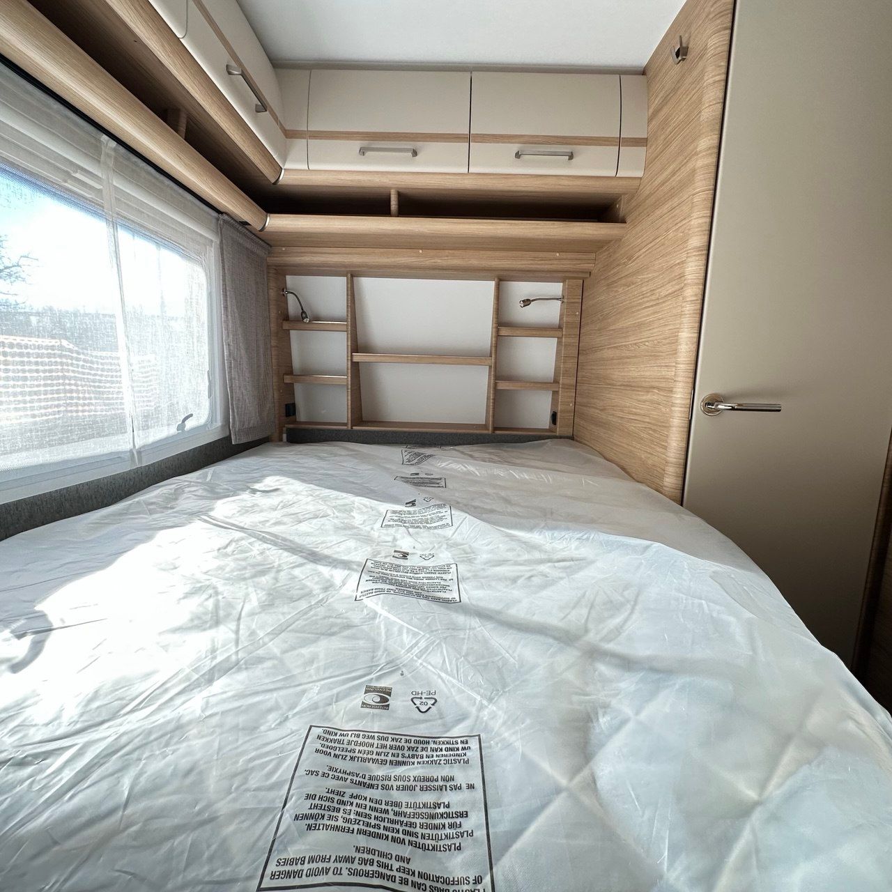Caravan Hobby 495 UL DE LUXE, peso omologato kg. 1450, posti letto 4+1. Caravan adatto anche per un campeggio itinerante, con l’optional della prolunga letti gemelli che trasforma i due letti singoli in un matrimoniale XXL a tre piazze, diventa 5 posti letto.