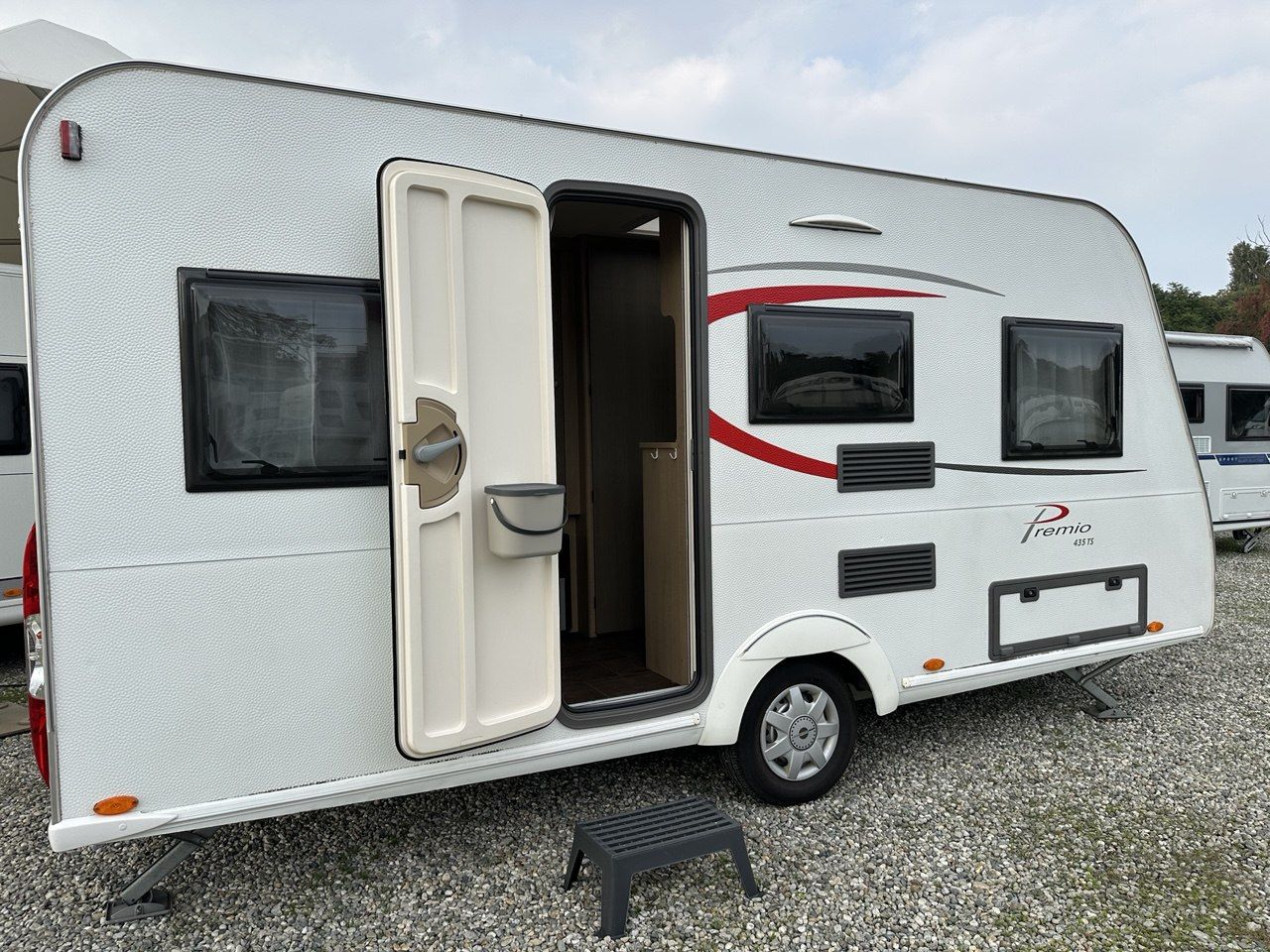 Burstner PREMIO 485 TK, immatricolata anno 2010, posti letto 5, peso 1.100kg a pieno carico, Completa di Tendalino a parete, Climatizzatore, Frigorifero da 100l., Stufa a gas da 3000cal, Boiler da caravan, Docciatore in bagno, Maxi apertura per la trasformazione del letto a castello in Box portatutto. OCCASIONE GARANTITA!