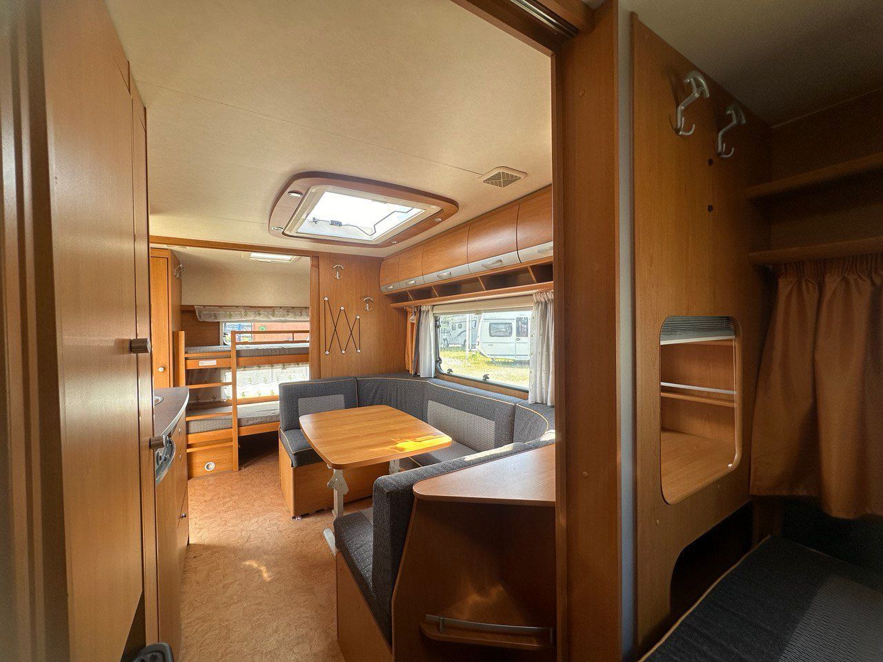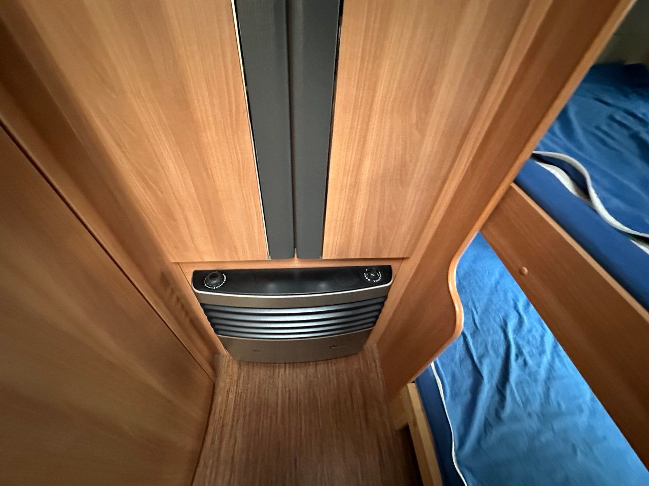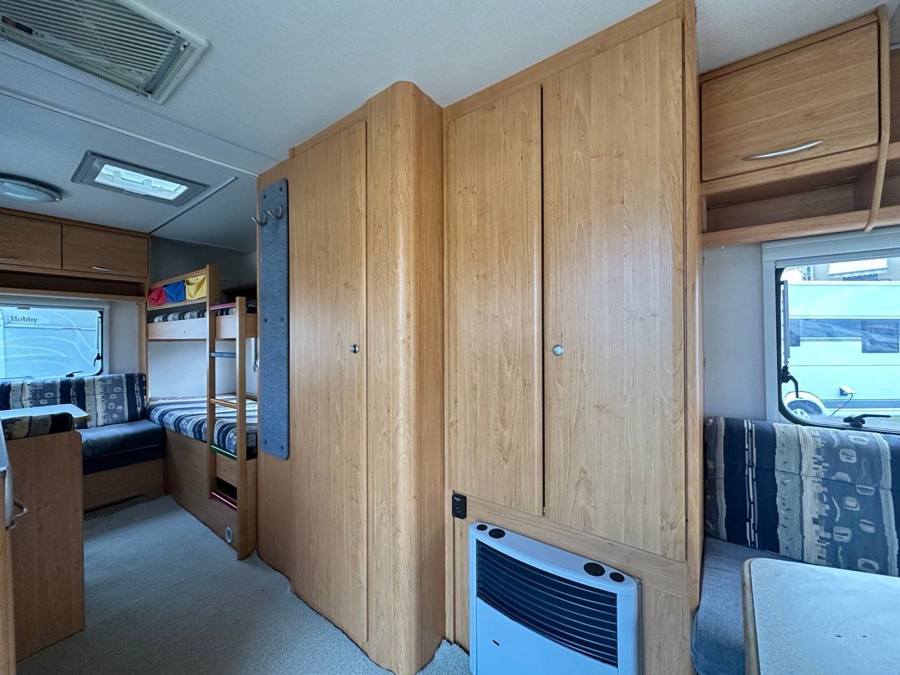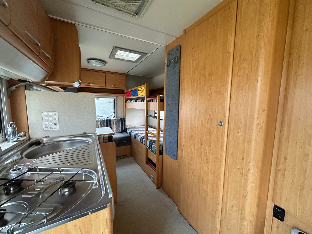 Questa caravan è completa di Movimentatore automatico+ stabilizzatore Winterhoff WS 3000 + tendalino integrato manuale + Forno a microonde + 3 letti a castello + serbatoio acqua da 50 l. + boiler truma Therme + Baggno con Box doccia sewparato + stufa 3000 cal. con termoventilazione