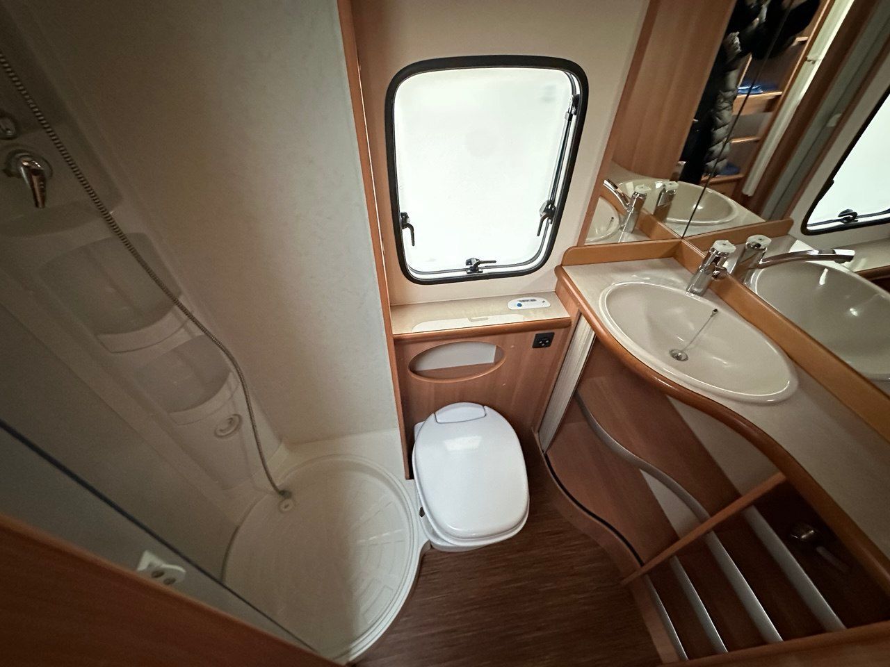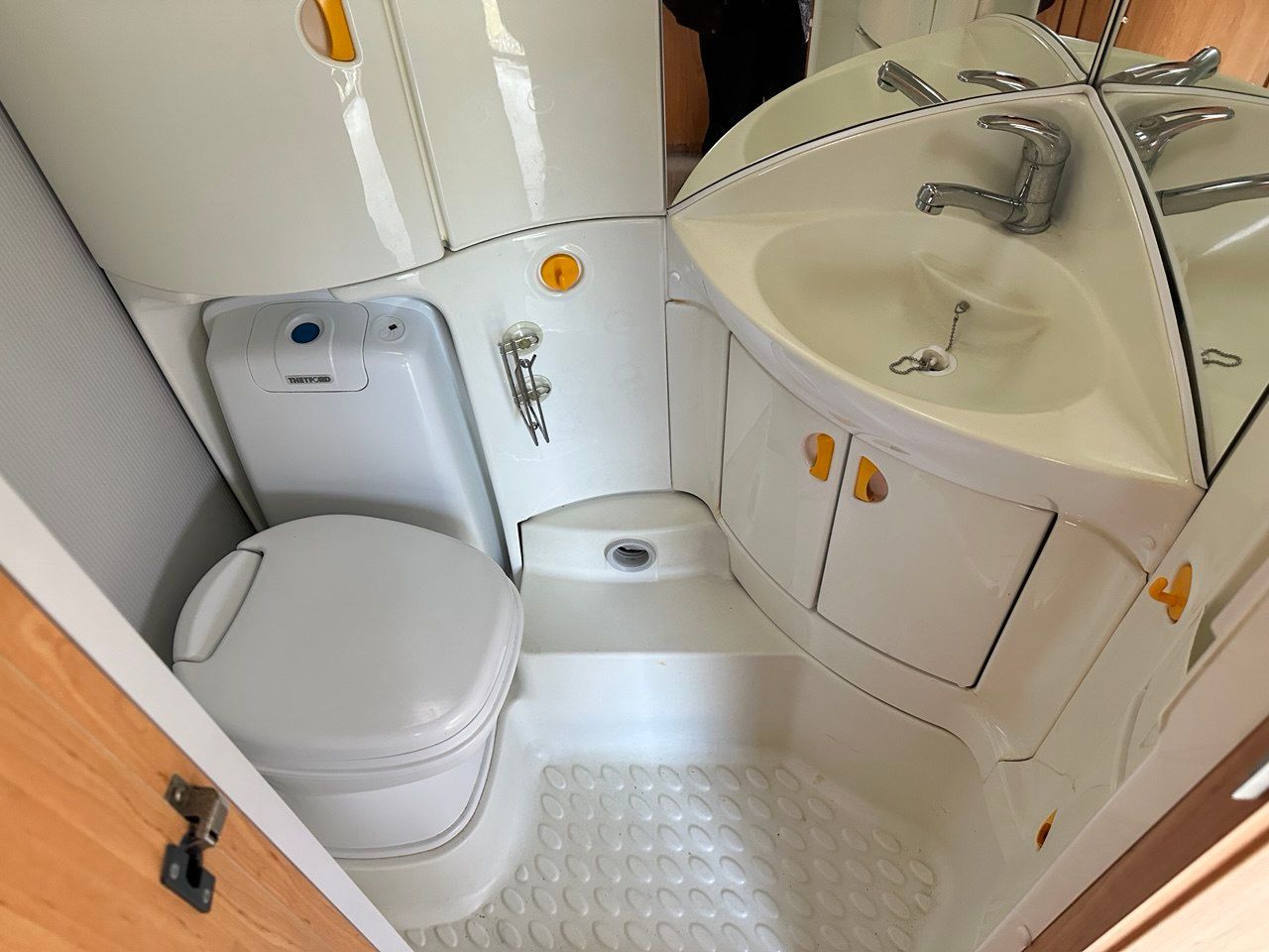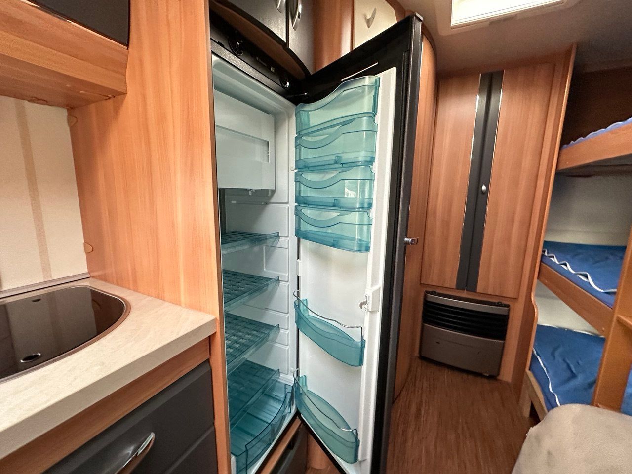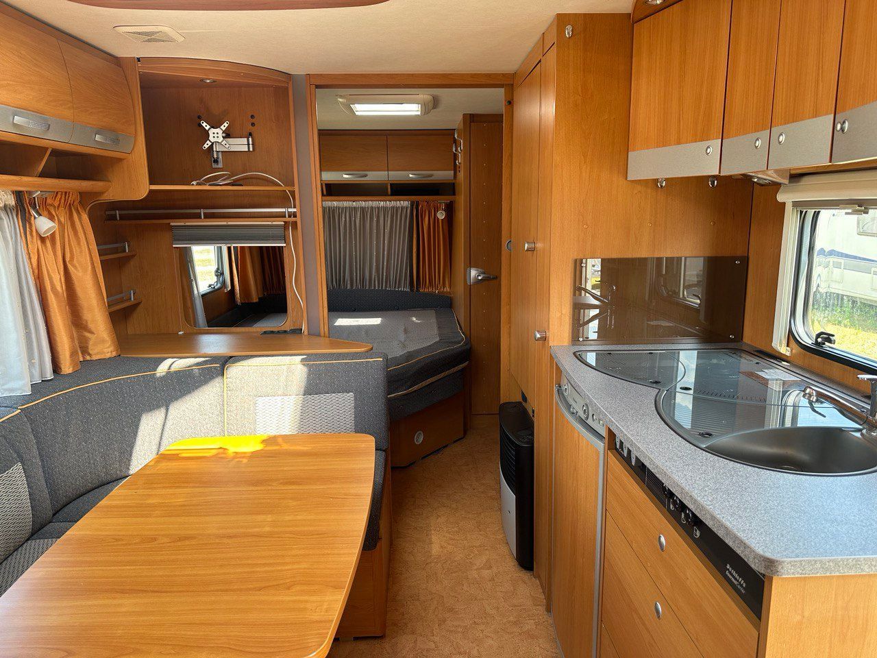 Questa caravan è completa di Movimentatore automatico+ stabilizzatore Winterhoff WS 3000 + tendalino integrato manuale + Forno a microonde + 3 letti a castello + serbatoio acqua da 50 l. + boiler truma Therme + Baggno con Box doccia sewparato + stufa 3000 cal. con termoventilazione