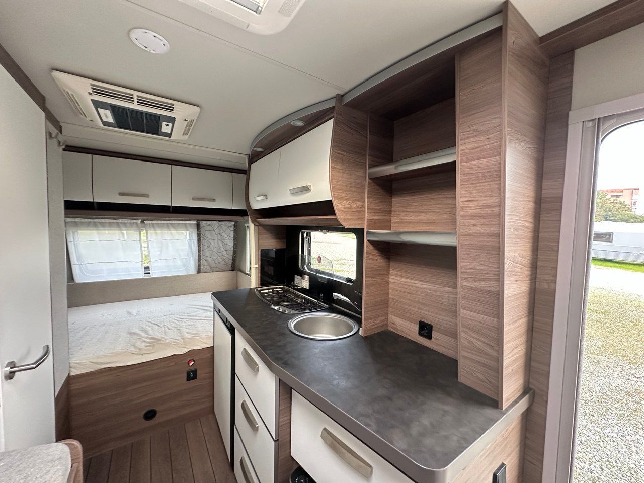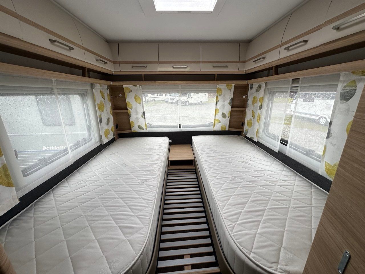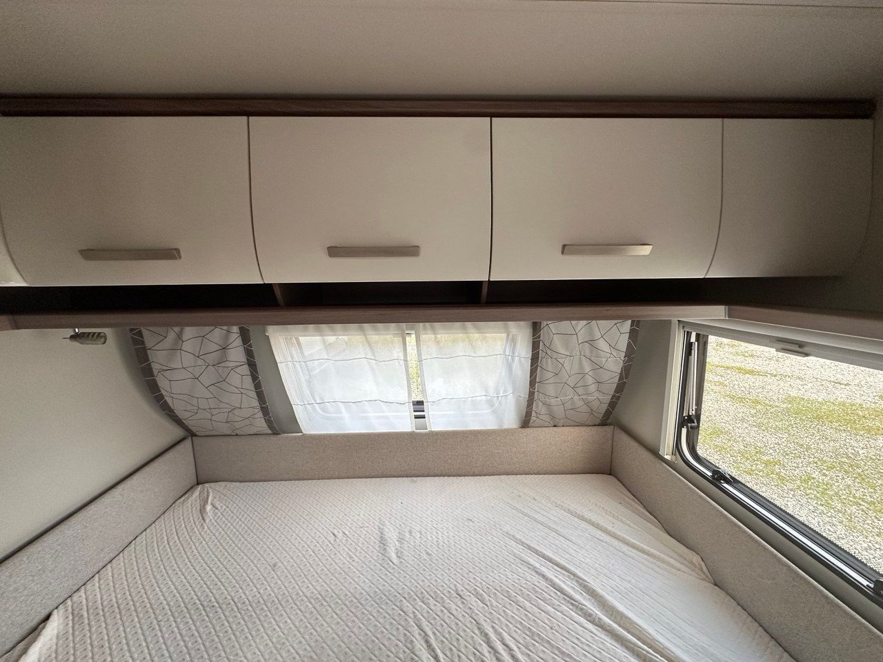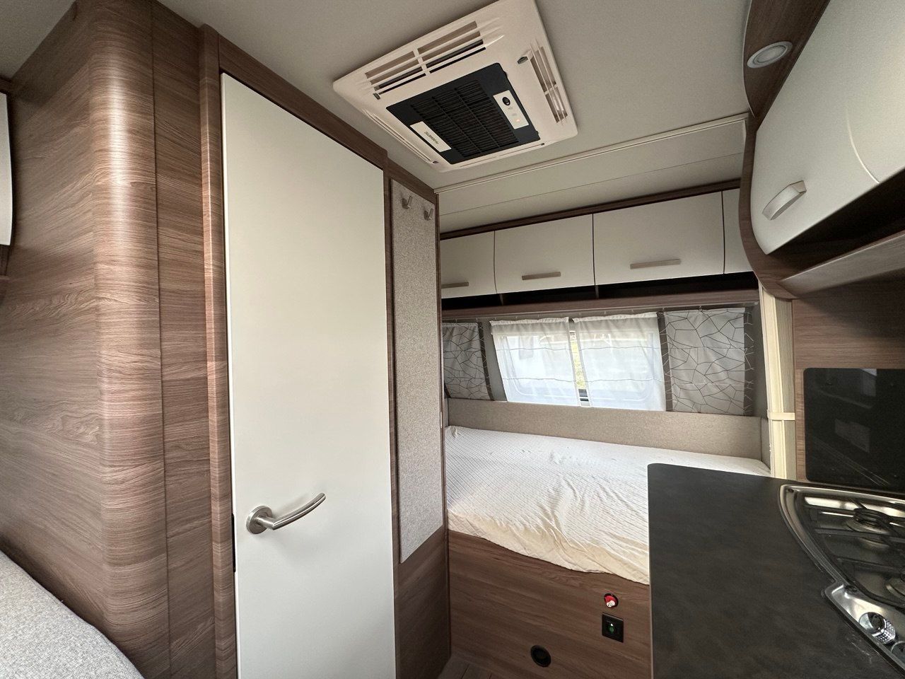 la caravan è .completa di movimentatore automatico con camperizzazione e staccabatteria elettronico, piedini elettrici autolivellanti, tendalino elettrico, luce esterna barra a led, luce porta, attacco gas esterno, attacco esterno tv, climatizzatore, stufa combi 4 con con termoventilazione eboiler integrato(volume 10l.), 2 oblò panoramici, 2 sportelli posti sotto letti gemelli per carico materiale anche dall'esterno, Zanzariera sulla porta .