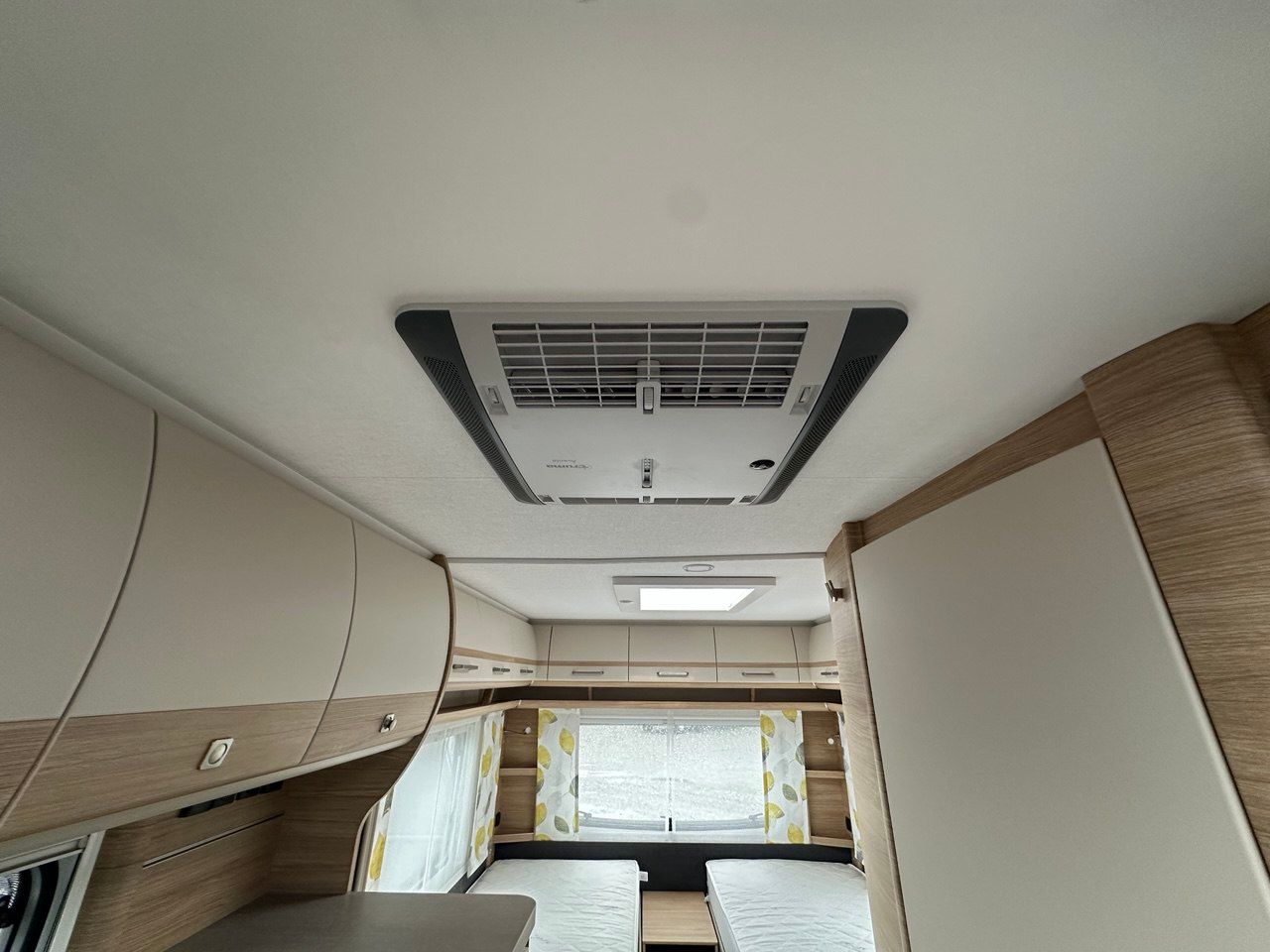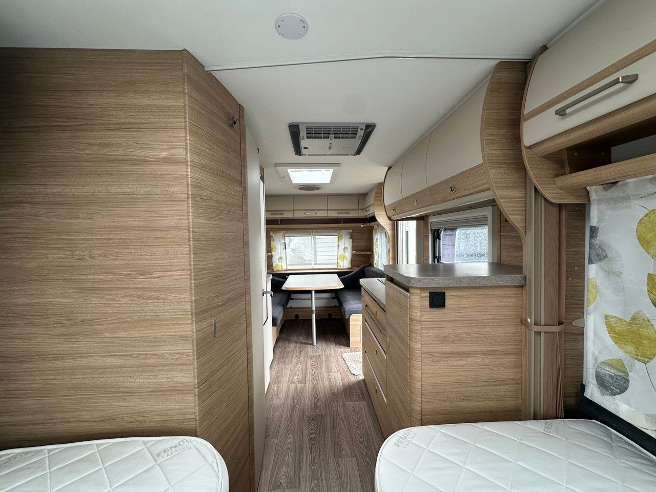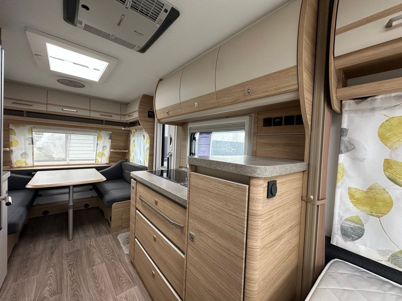 la caravan è .completa di movimentatore automatico con camperizzazione e staccabatteria elettronico, piedini elettrici autolivellanti, tendalino elettrico, luce esterna barra a led, luce porta, attacco gas esterno, attacco esterno tv, climatizzatore, stufa combi 4 con con termoventilazione eboiler integrato(volume 10l.), 2 oblò panoramici, 2 sportelli posti sotto letti gemelli per carico materiale anche dall'esterno, Zanzariera sulla porta .
