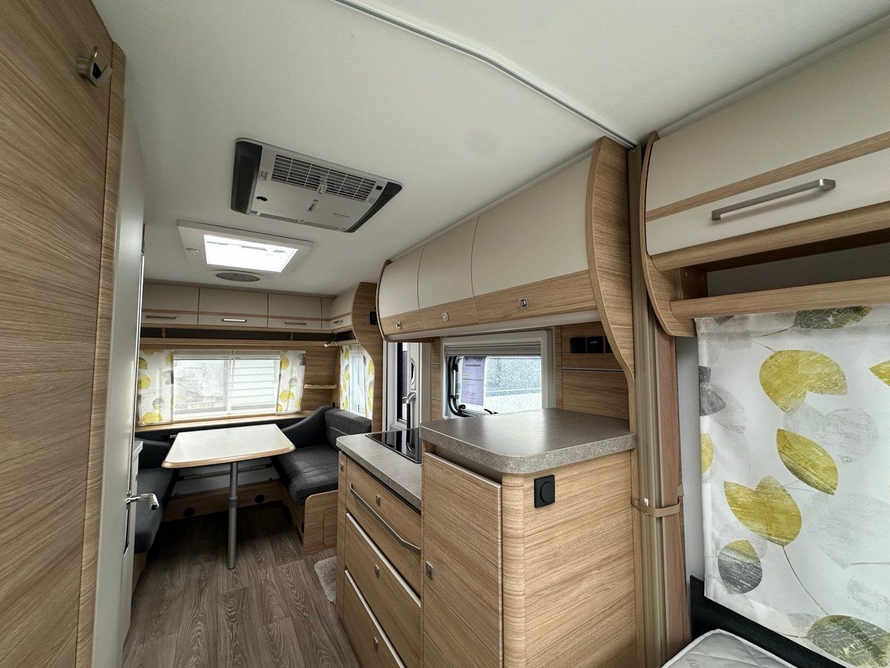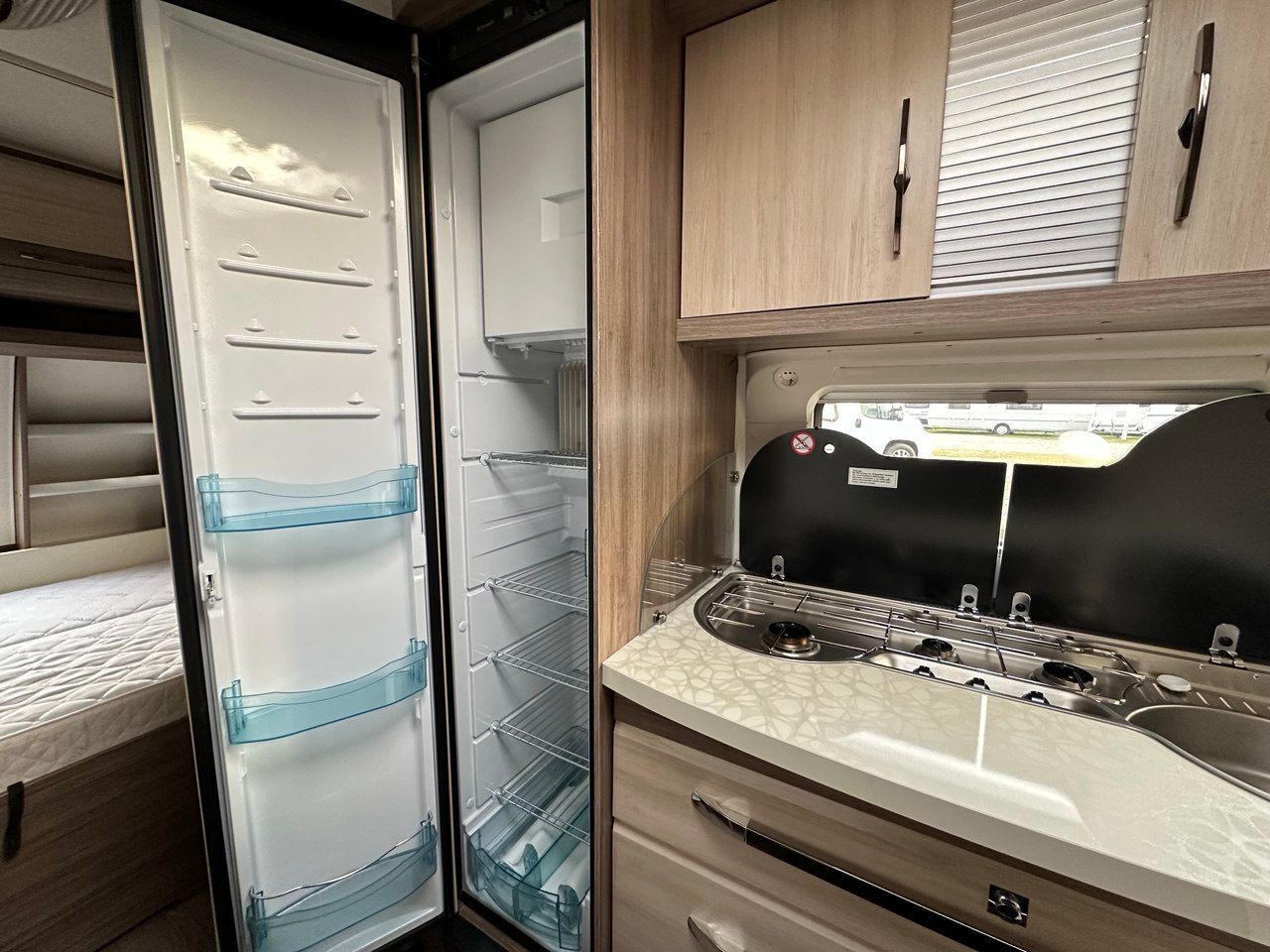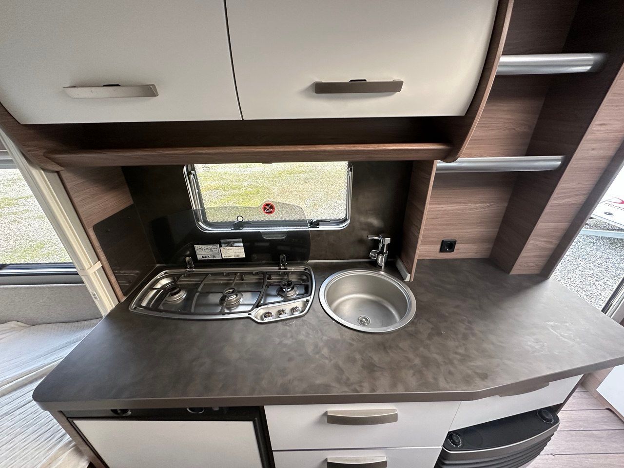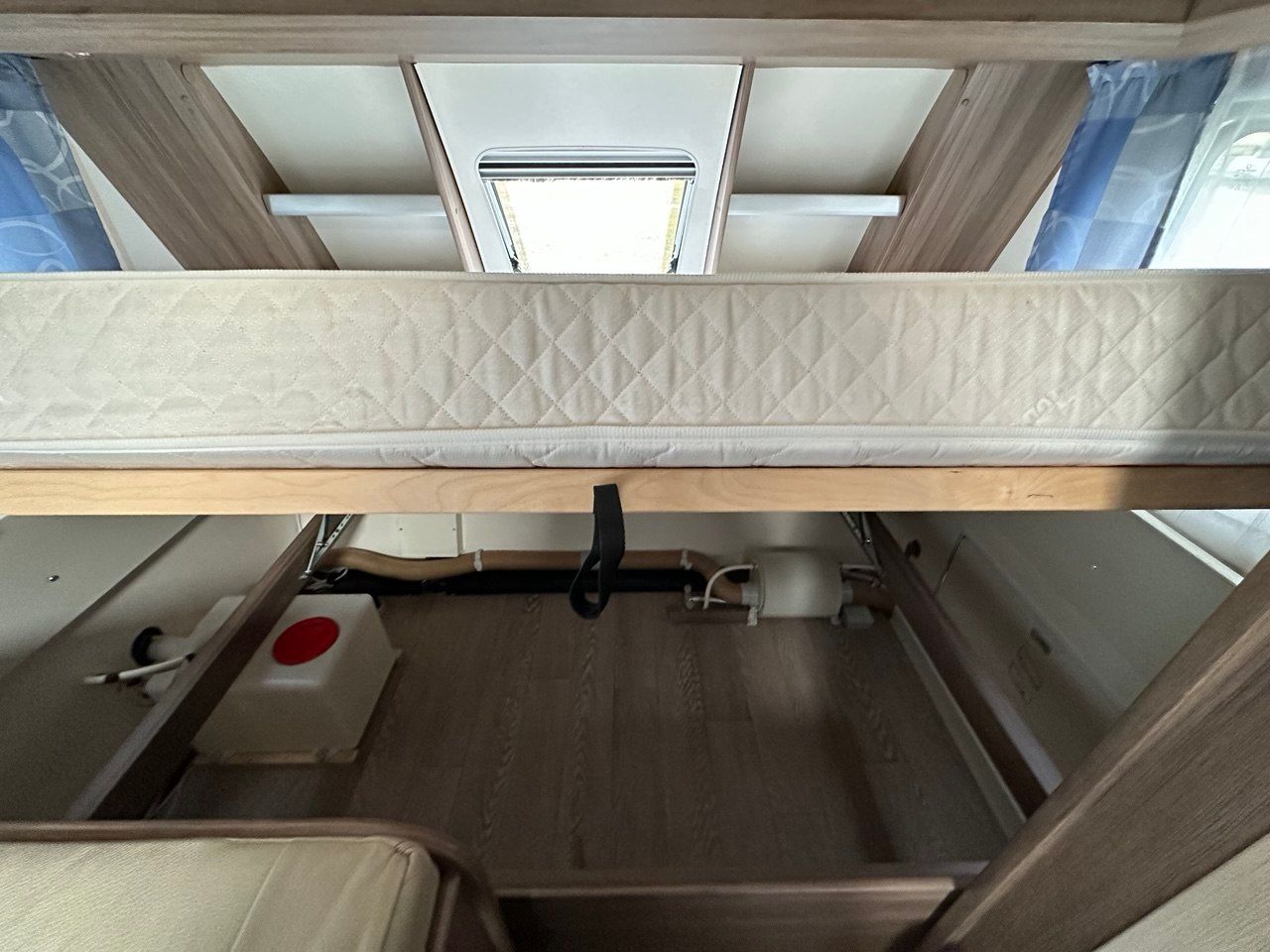 la caravan è .completa di movimentatore automatico con camperizzazione e staccabatteria elettronico, piedini elettrici autolivellanti, tendalino elettrico, luce esterna barra a led, luce porta, attacco gas esterno, attacco esterno tv, climatizzatore, stufa combi 4 con con termoventilazione eboiler integrato(volume 10l.), 2 oblò panoramici, 2 sportelli posti sotto letti gemelli per carico materiale anche dall'esterno, Zanzariera sulla porta .