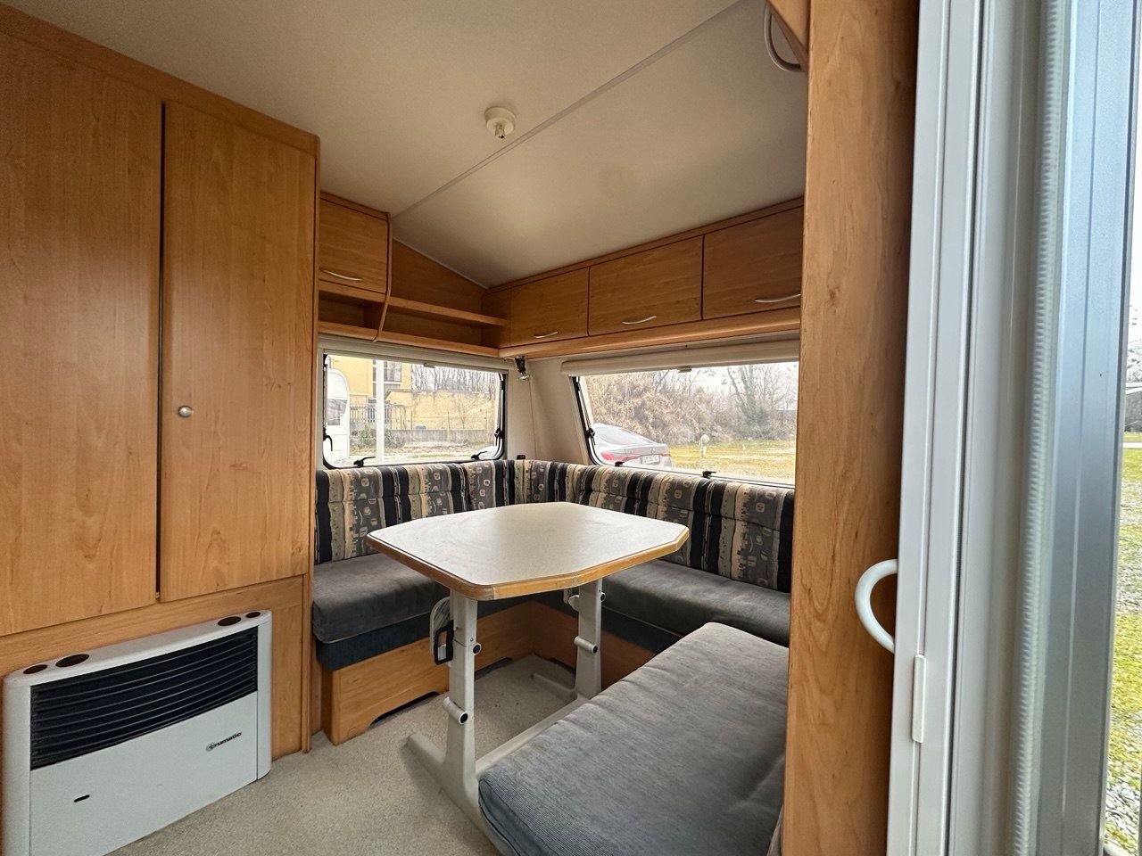 Questa caravan è completa di Tendalino fisso + veranda Nova modello Fresia + riscaldamento Truma S 3000 cal. con ventilazione + Serbatoio acqua 40 l. + Boiller + oblò con ventola.