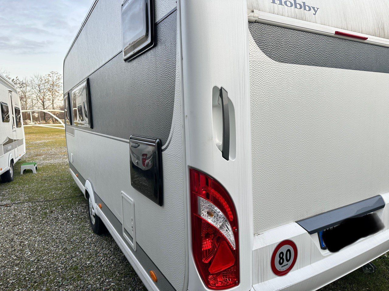 Caravan Hobby 560 WFU PRESTIGE, anno 2020, 1600kg., completa di movimentatore con camperizzazione, antenna satellitare, condizionatore, veranda gonfiabile, stufa Combi, Cucina con 3 fuochi, piastra elettrica, forno a gas, scaldavivande, grill, serbatoio acqua 50l., boiler, stanza da bagno con box doccia dedicato, portabici, stabilizzatore WS 3000, Piedini rinforzati, Copricerchi.
