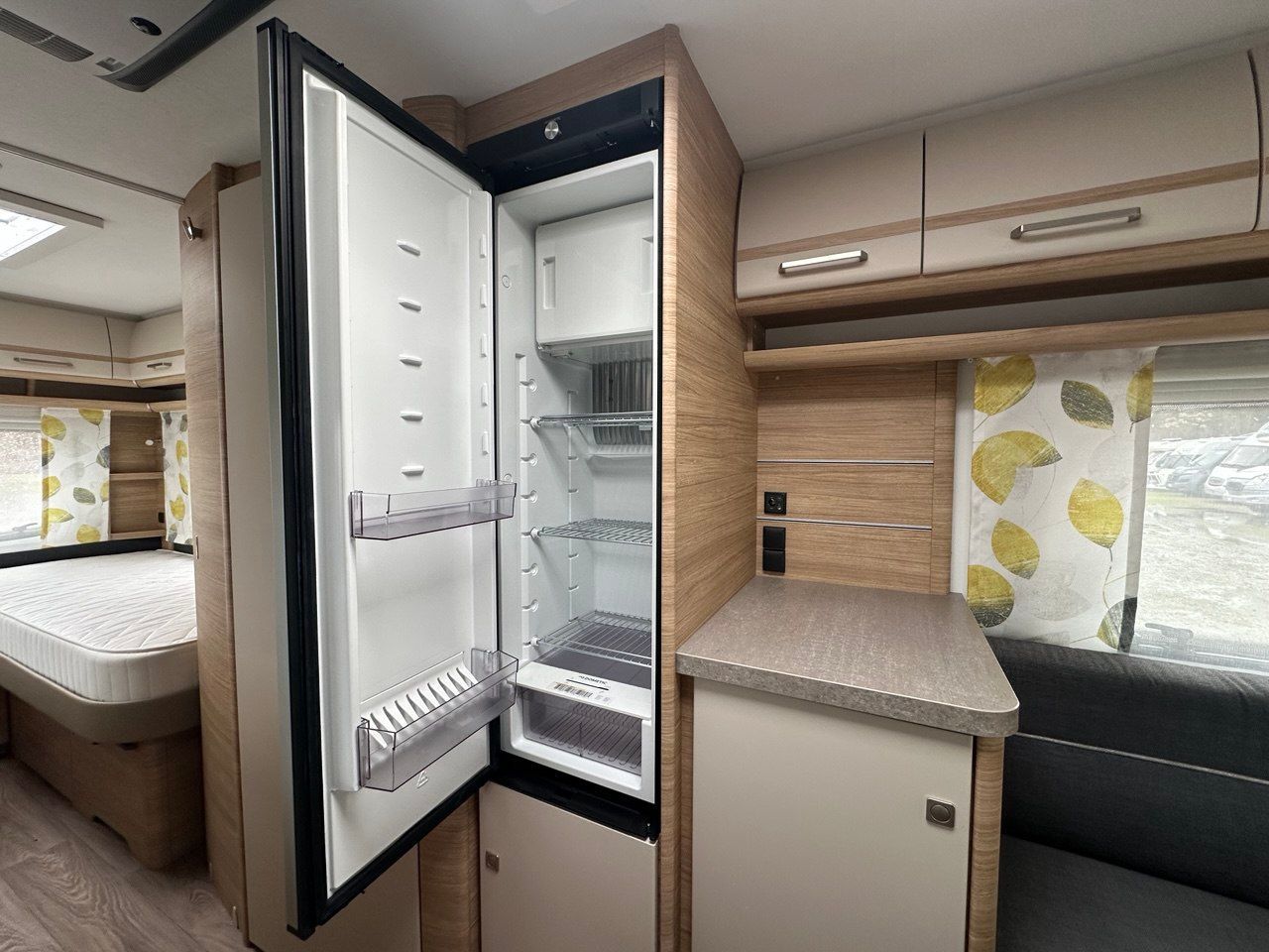 Frigorifero trivalente 110 l., Oblò panoramico,, stufa 3000 con termoventilazione,, Boiler Truma Terme, serbatoio acqua 50l., Docciatore in bagno,Movimentatore Truma XT, Tendalino,, antenna tv, zanzariera sulla porta , piedini rinforzatii.